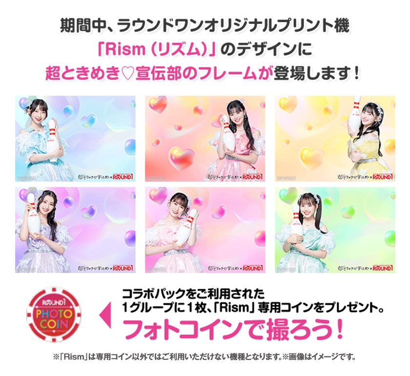 全国のボウリング98店舗のラウンドワンオリジナルプリント機「Rism(リズム)」のデザインに「超ときめき♡宣伝部」のフレームが登場します。