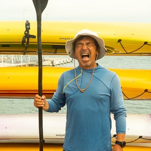 上天草市の観光拠点施設「mio camino AMAKUSA(ミオカミーノ天草)」に併設する「unplugged (アンプラグド)」のシーカヤックガイド。サラリーマン時代は、毎週金曜日にカヤックを車に積んで出勤し、仕事帰りにそのまま海へ直行。週末は無人島で過ごすのが定番のスタイルだった。