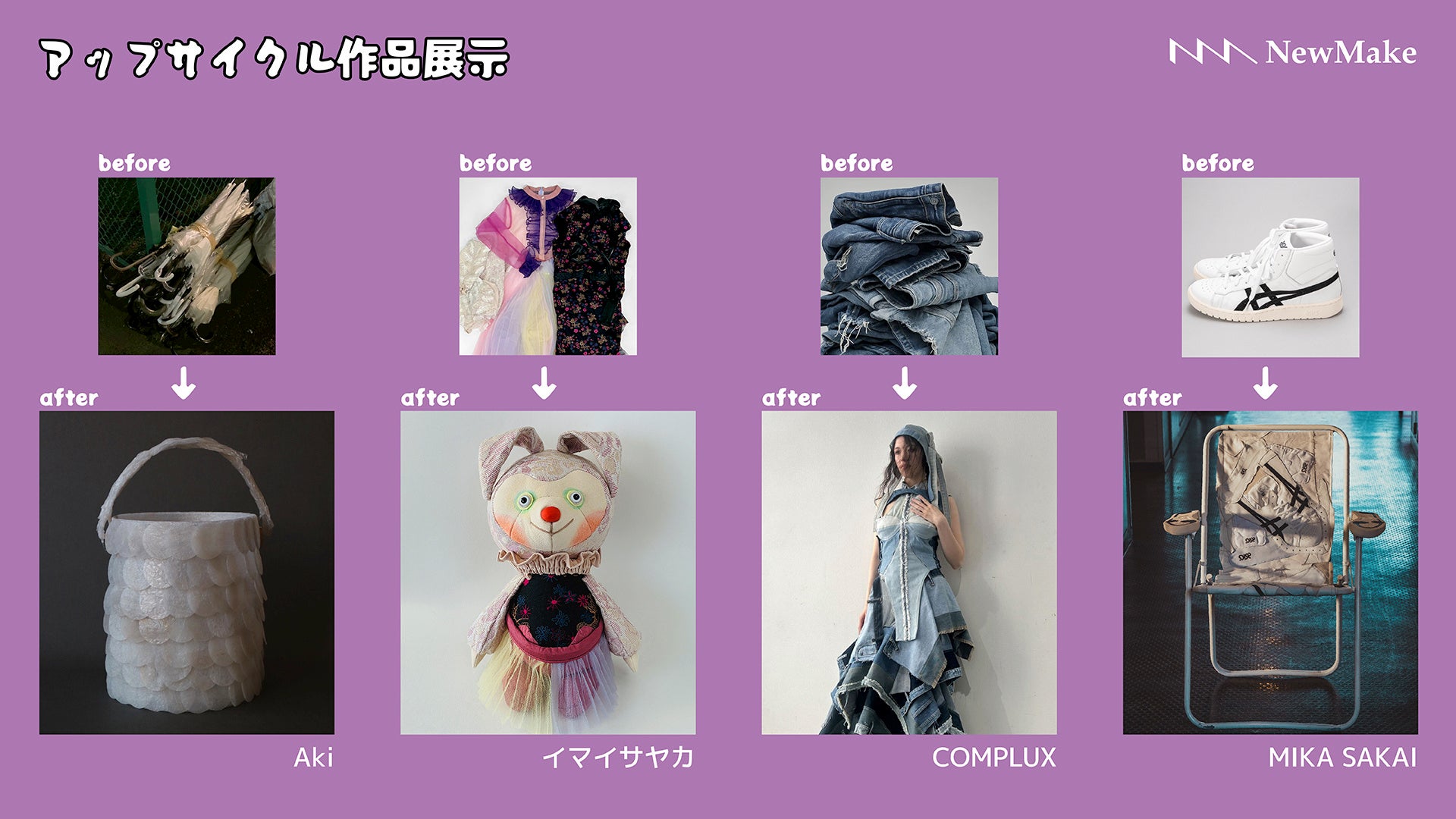 NewMakeクリエイターによるアップサイクル作品を展示します。