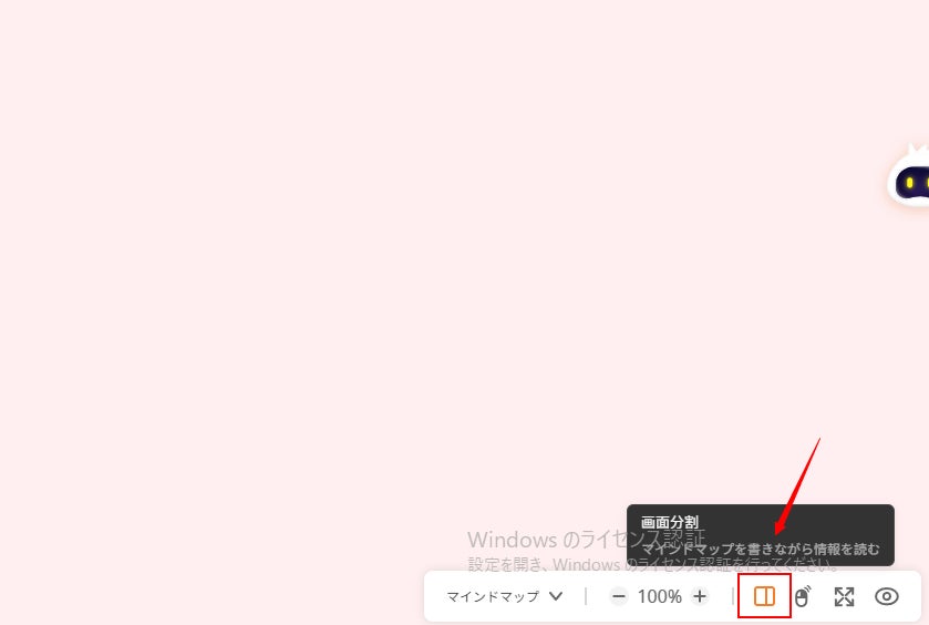 ステップ1:GitMindマインドマップのファイルを開き、右下の「画面分割」をクリックします。
