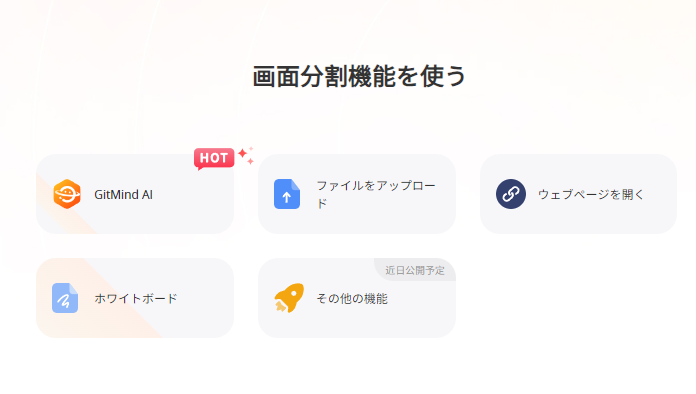 ■ 最適化された視覚体験:GitMindは画面分割モードを設計する際に、ユーザーの視覚体験を十分に考慮しました。インターフェイスは、複雑な作業を行う際の視覚的な快適さと操作のしやすさを保証します。