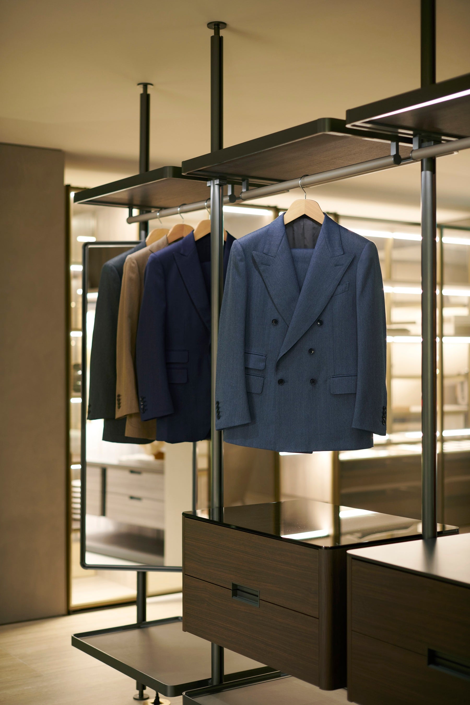 今回MARENCOの張り地として使用されたのは、イタリアの高級老舗服地メーカーヴィターレ・バルベリス・カノニコ創業360周年と三越創業350周年、両社合わせて710周年を記念し、特別に製作されたエクスクルーシブファブリックです。『Beausoleil(ボーソレイユ)』フランス語で「美しい太陽」と名付けられたこのファブリックの起源は、20世紀初頭に熱帯地⽅での⽇差しを防ぐために作られた機能性服地に遡ります。今回は三越伊勢丹とVBCとのコラボレーションにより、⽣地の表⾯と裏⾯で特別なカラーコンビネーションが誕⽣致しました。VBC社のサスティナビリティを代表する独⾃素材、21マイクロンウールを使⽤した、完全なノン・ミュールジング・ウール(Non Muelsing Wool)素材です。防シワ性、回復⼒、耐久性、通気性に優れ、超強撚⽷によってウールの持つ可能性を最⼤限に引き出しています。強靭なこのウールを経⽷と緯⽷の2プライとし、シルエットの美しさと耐久性を実現しています。ヘリンボーンや綾⽬ベースの無地は裏表で異なる⾊を放ち、抑制が利いた優雅な⽟⾍⾊の光沢が特徴です。伝統と永続性の象徴であるこのファブリックは、同時に、サスティナビリティな製造と最上級の品質に妥協することなく、機能性と美しさを併せ持つ、新たな時代へ向けた両社からのメッセージです。