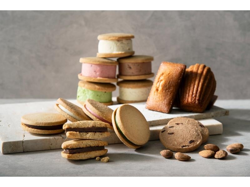 クッキーにはフランス産発酵バターを使用。クリームの中にジュレが隠れたサンドもラインナップし、より贅沢な味わいです。