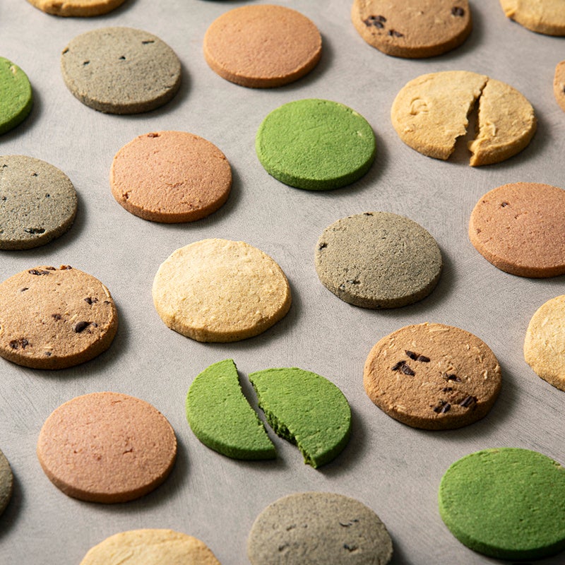 フランス産発酵バターを使って焼き上げる、シンプルながら深いコクのあるクッキーが、それぞれの個性あふれるチョコレートフィリングの味わいを引き立てます。
