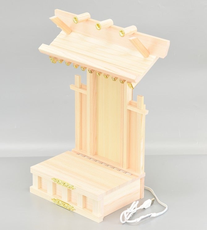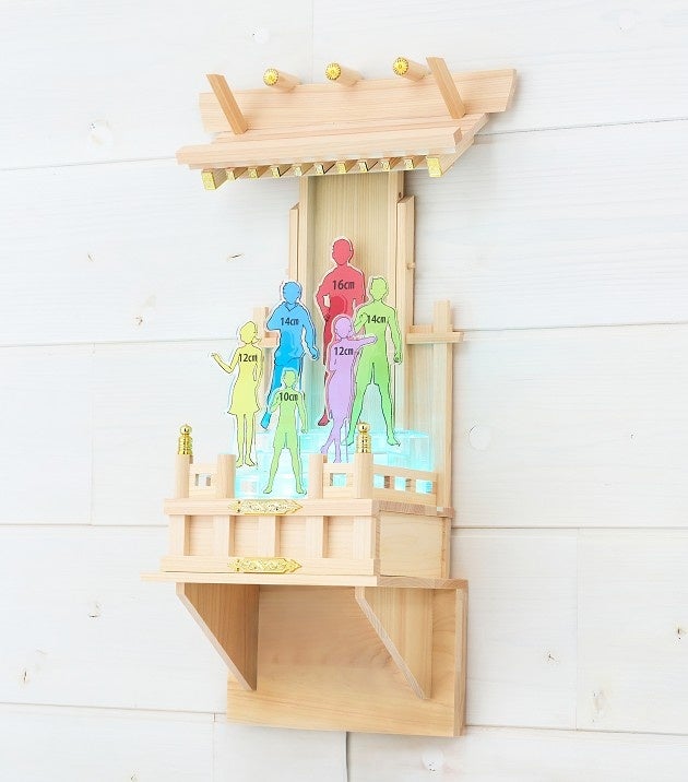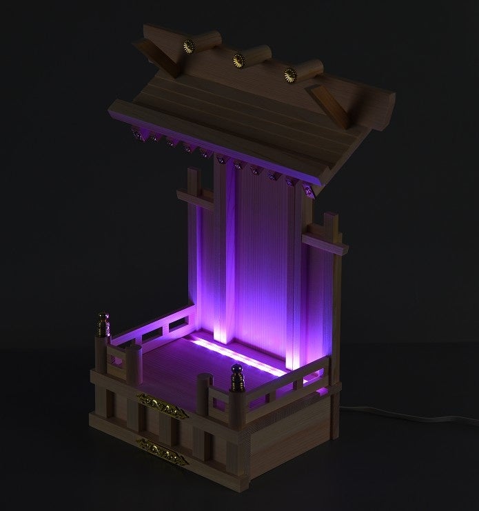「推し壇」は、国産ヒノキ材を用い、日本国内で作られた本物の神棚や祭壇さながらの仕様で、お飾りするものに合わせて、高さ調節ができる屋根と20色21パターンで点灯するLEDライトの組み合わせにより、思い思いの祈りの空間を作ることが可能です。