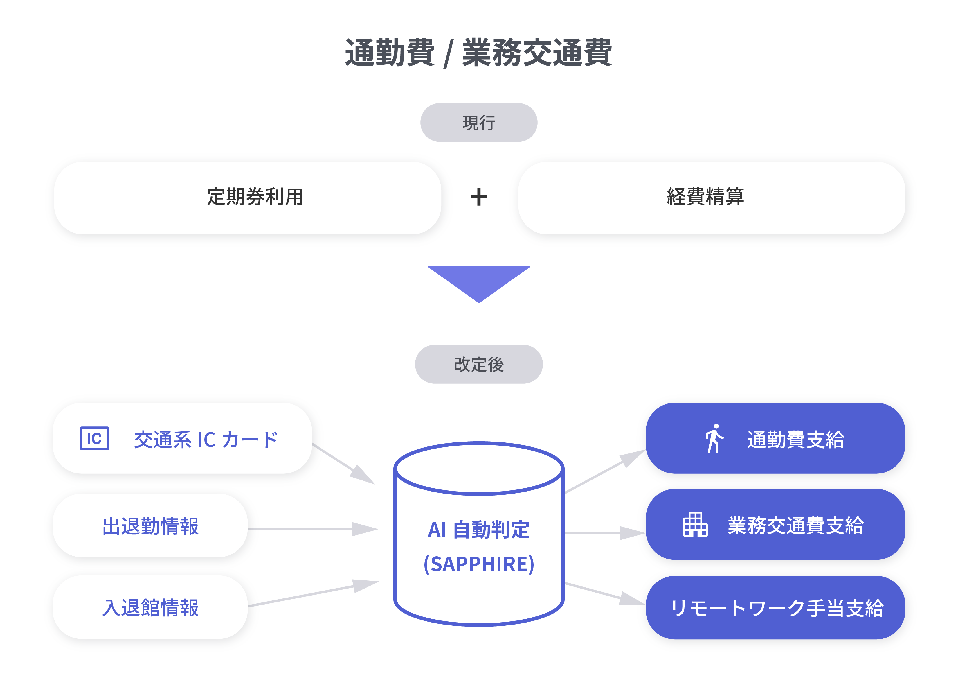 こうした観点から、日々の交通費実績に、従業員の勤務および入退館情報を組み合わせたAI判定により、申請の負荷軽減や正確性の担保、不正の排除を合わせて実現できる「SAPPHIRE」の導入が最適と判断しました。更に、日々膨大な量に及ぶ、業務に伴う近郊交通費の精算についても、事務効率化の観点から同システムに処理を統合することと致しました。