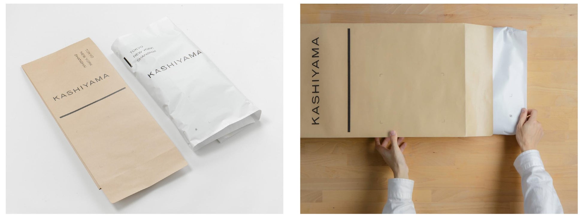 オーダーメイドブランド『KASHIYAMA』エコサスプロジェクト第2弾スーツ配送時の梱包を段ボール箱から紙袋へより環境に配慮したコンパクトなパッケージへと生まれ変わりました