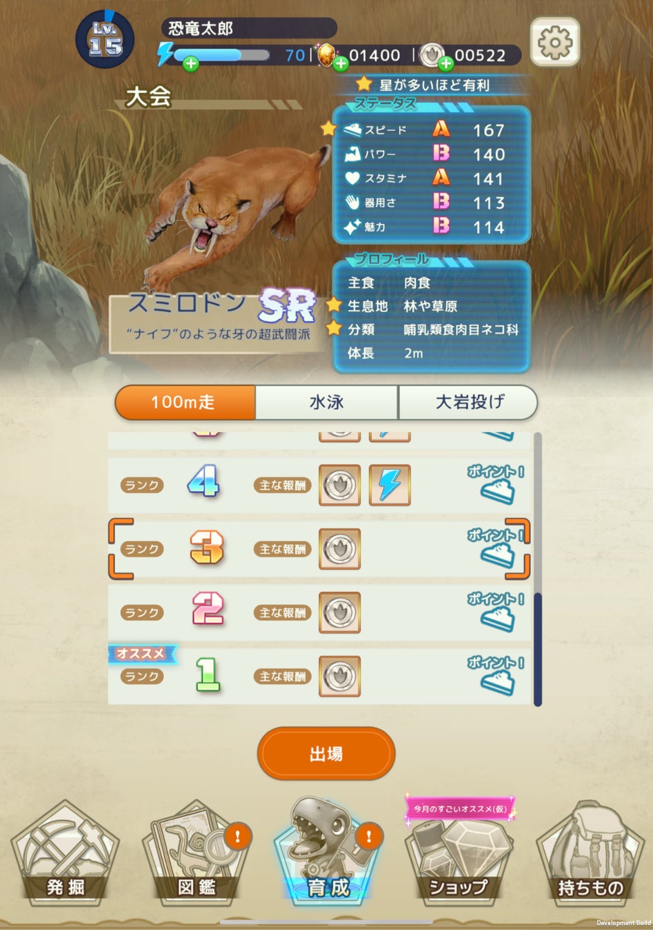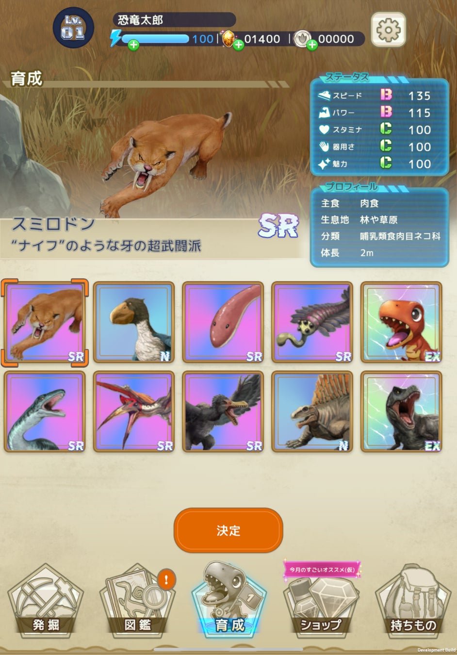 今回、既存の化石発掘ミニゲーム「発掘チャレンジ」と特定のエリアで発掘できる「フィールド発掘」に加え、復元させた生物を育成できる機能を開発・提供開始しました。自分好みに絶滅動物を育て、育成した動物は大会に出場させることが可能です。