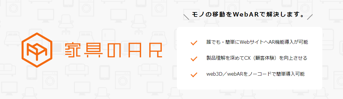 家具、家電、インテリア雑貨など、生活にかかせないライフスタイルに関する商品を展開しているメーカー様、卸様、小売店様向けに、エンジニア不要で誰でも簡単にARを導入できるツールになっております。