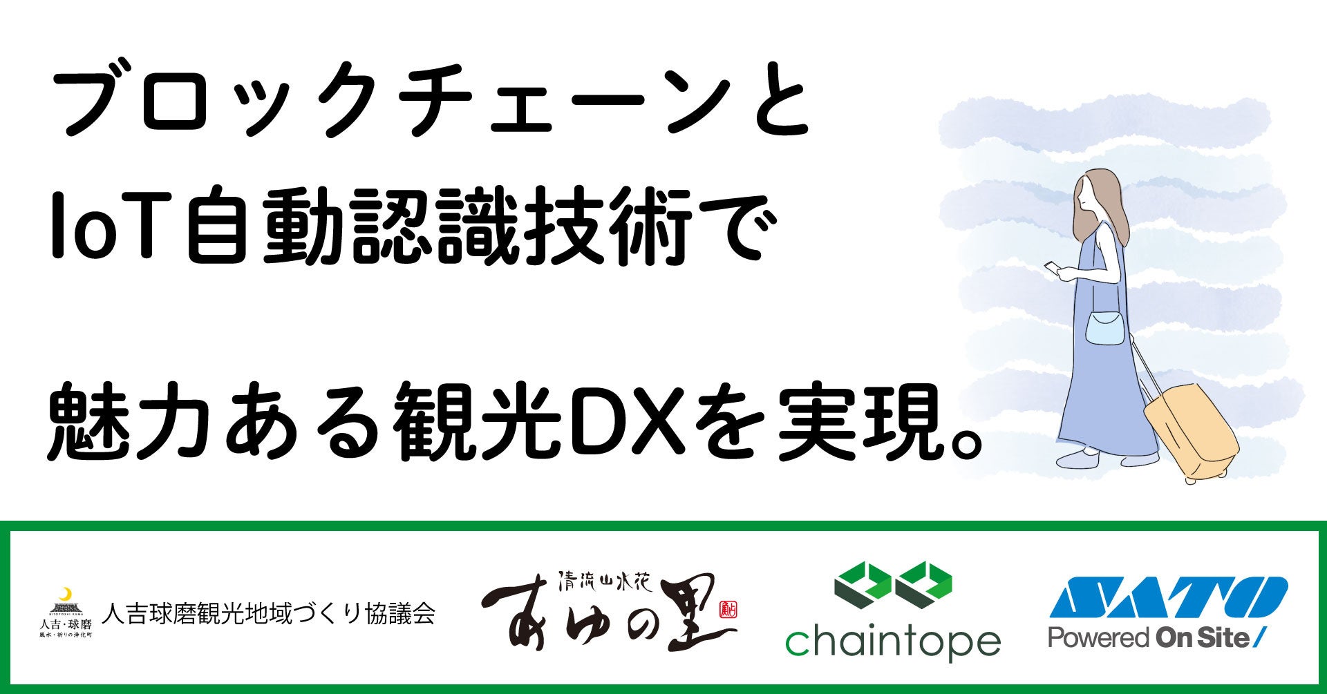 Chaintopeは、一般社団法人 人吉球磨観光地域づくり協議会(所在地:熊本県球磨郡あさぎり町、代表理事:松岡 隼人 以下、「人吉球磨観地協」)、清流山水花あゆの里(所在地:熊本県人吉市、代表取締役:有村 充広 以下、「あゆの里」)、株式会社サトー(本社:東京都港区、代表取締役:笹原 美徳 以下、「サトー」)と連携し、デジタルコンテンツ・データを活用した人吉球磨での観光客のリピート率向上の取り組みを実施します。