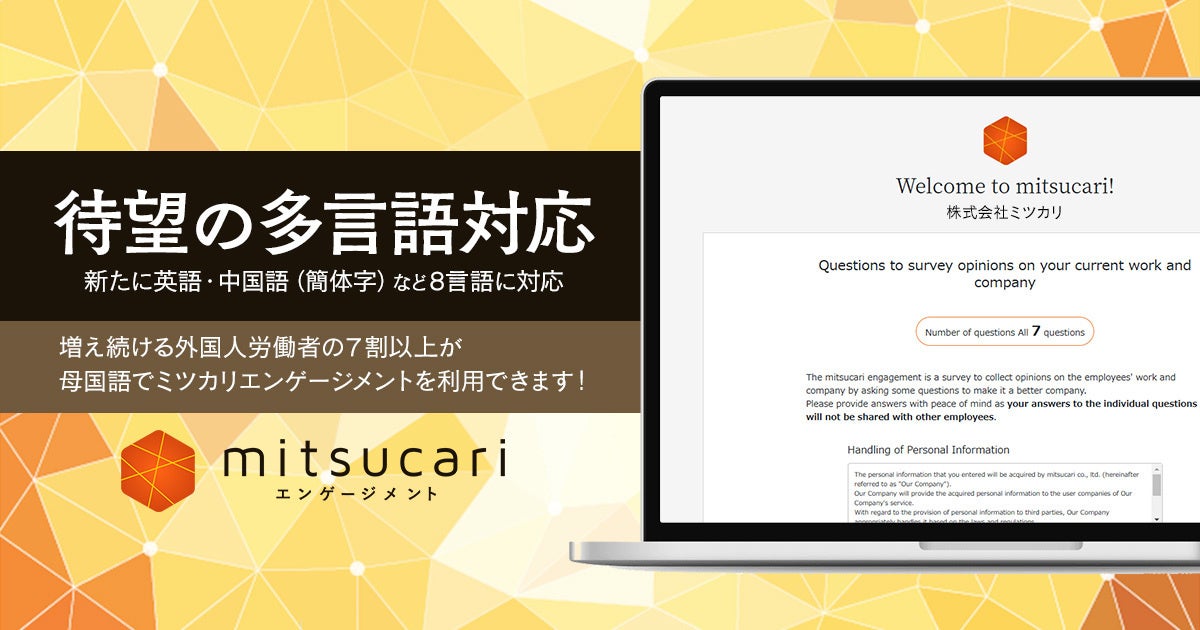 「ミツカリエンゲージメント」、8言語対応で外国人労働者のエンゲージメント向上を支援