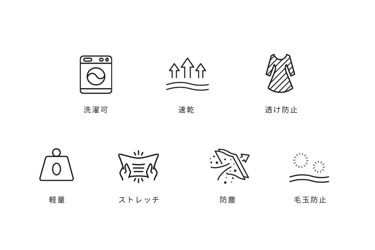 洗濯可能な素材にこだわり、ストレッチでシワになりにくく、おしゃれだけでなく機能的・衛生的に。