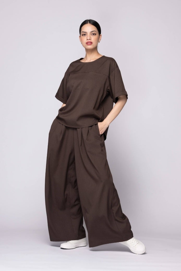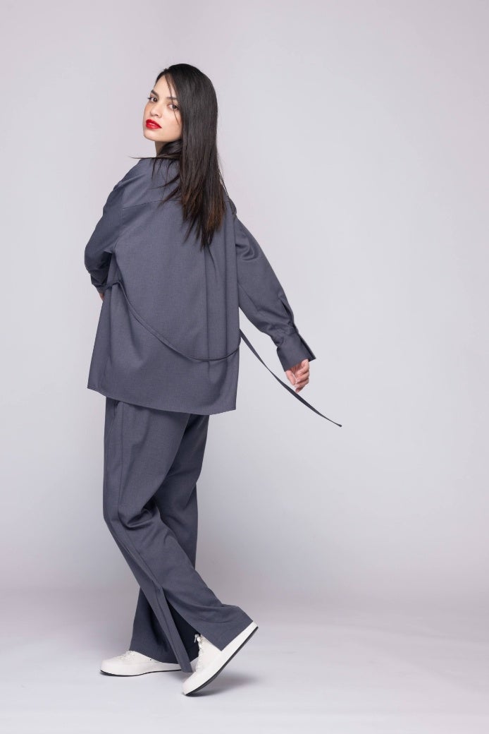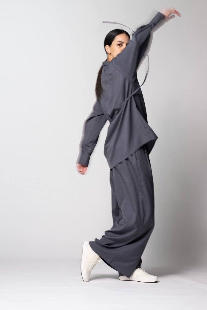 締め付け感のないスカートのような穿き心地。ボリューム感のあるシルエットが個性を引き立てる。 ※パンツは全てウエスト内側に調整可能な紐付き。