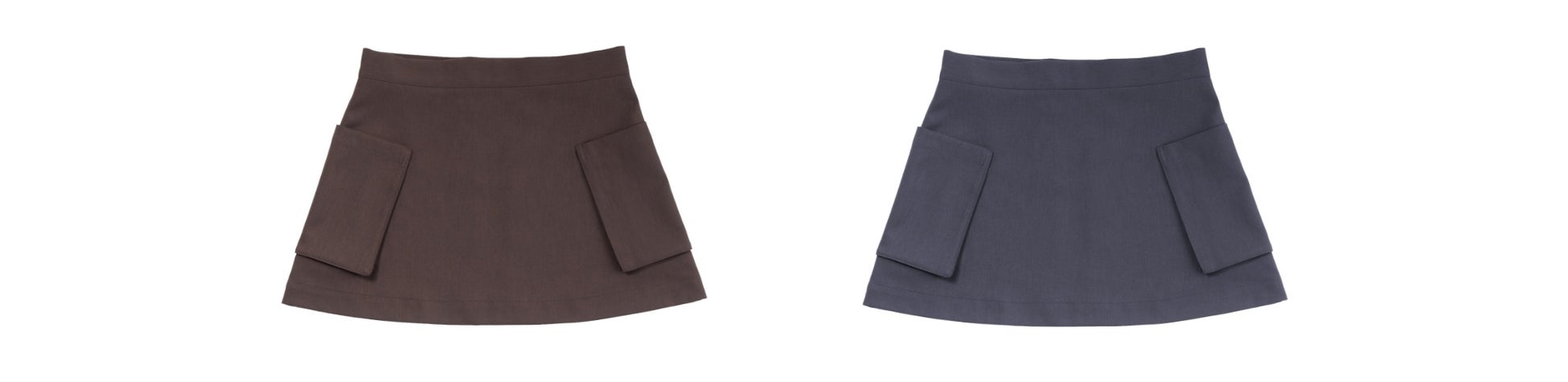 実用性に優れた大きく立体感のあるポケット。程よく拡がりのあるデザインが体型問わず美しく見せるシルエット。合わせるボトムを選 ばないミニ丈。
