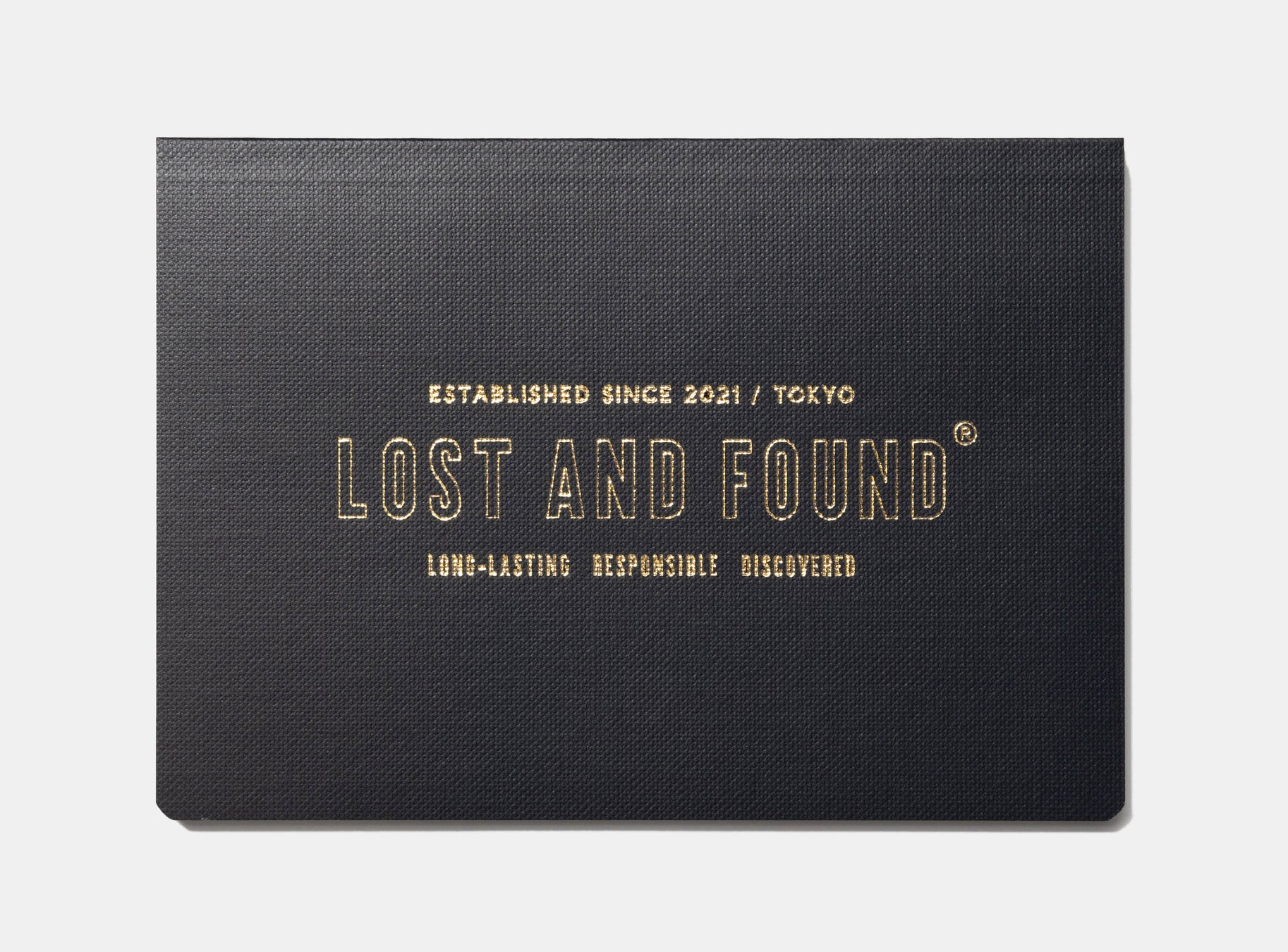 今回の特別企画として、LOST AND FOUNDのロゴを箔押ししたTHINK OF THINGSオリジナルノートをLOST AND FOUND TOKYO STOREにて販売いたします。