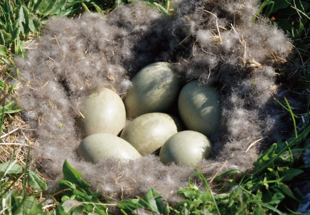 「羽毛の王様」と呼ばれるアイダーダック。北極圏周辺に生息する野生の鳥、アイダーダックは、卵を温めるために自分の胸のダウンを使い、巣作りをします。ヒナ達が巣立った後に採取した、非常に希少性の高いダウンです。ダウンはタンポポの綿毛のように細い繊維が中心から全方向に伸びています。