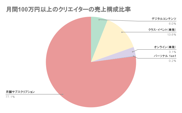 MOSHでは、月間100万円以上収益を上げるクリエイターの約78%が「月額サブスクリプション(以降:サブスク)」のサービスで売上をあげている実態があります。(※MOSH調べ)
