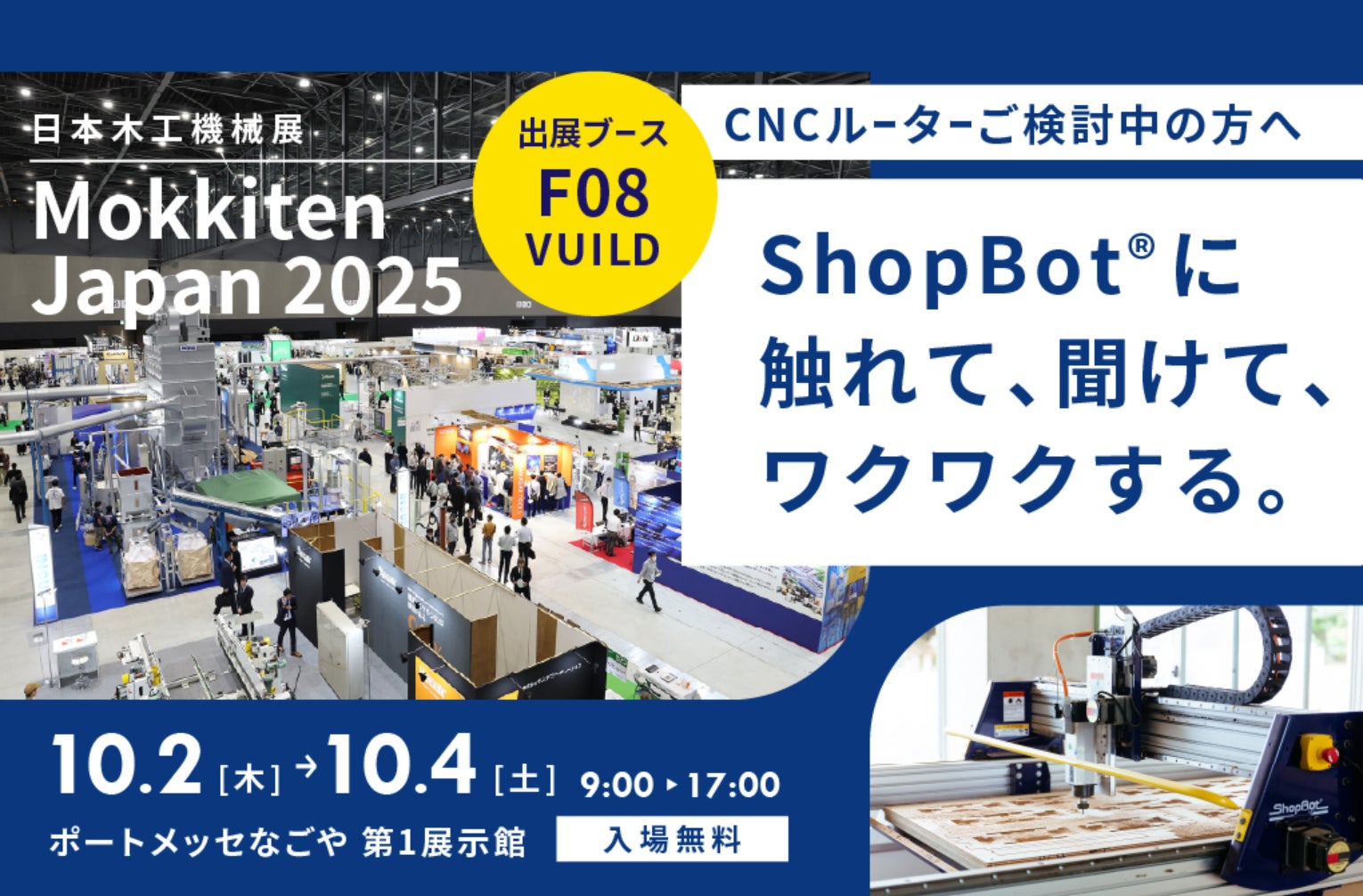 こうした動きを直接ご覧いただける機会として、VUILDは2025年10月2日から4日まで名古屋で開催される 「木材加工機械展(Mokkiten 2025)」 に出展します。今回の協業をはじめ、各地で進むプロジェクトやテクノロジーの活用事例を紹介し、来場者と共にこれからのものづくりと地域の未来を考える場をつくっていきます。ぜひご来場ください。