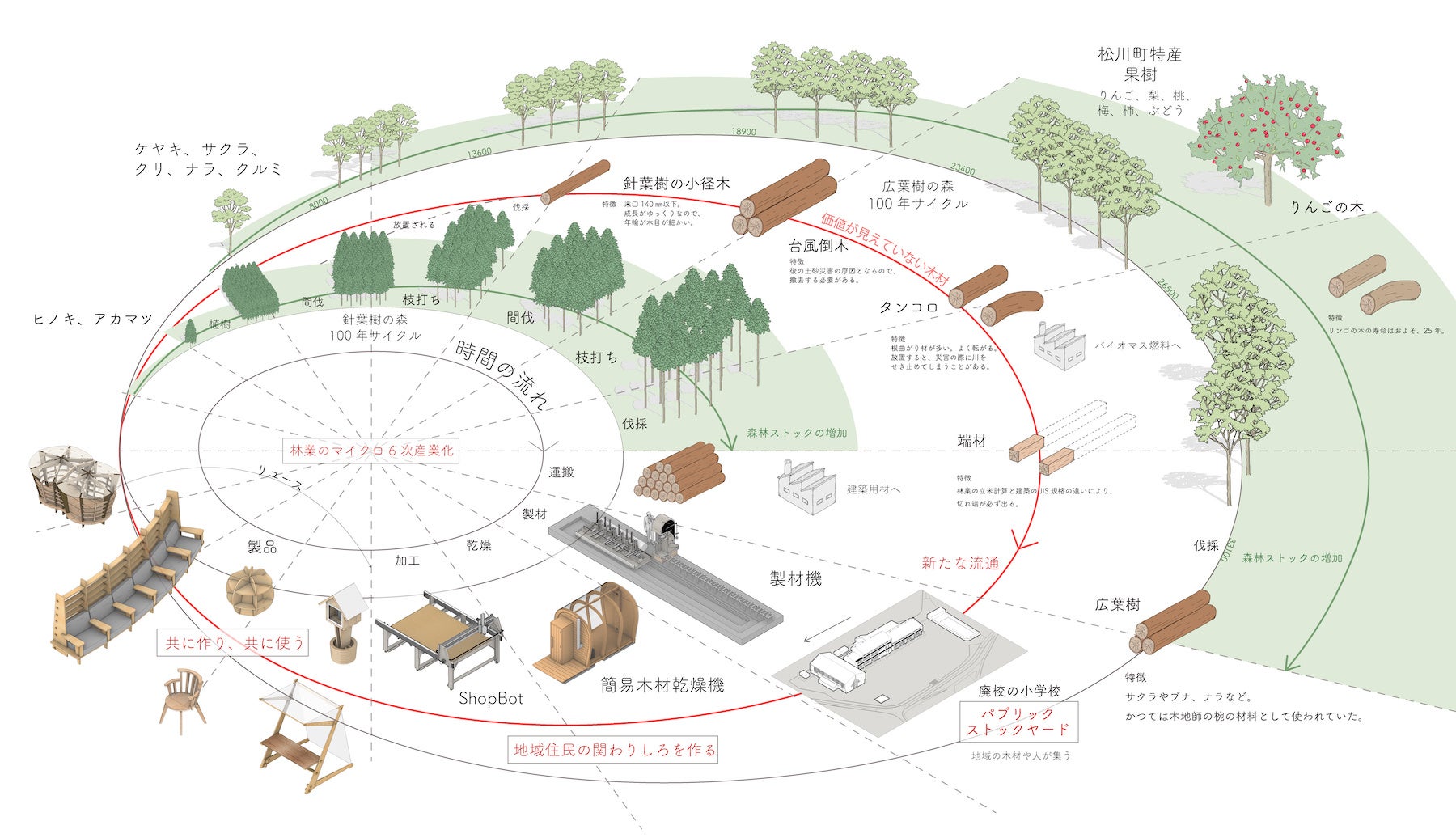 都市と森が近接する環境を活かし、モバイルファブカーで森の資源をまちに運び、誰もが木工・デジタルものづくりを体験できる場を提供。林業の停滞や都市と森の分断といった課題に対し、楽しさを原動力に人と森の循環を育む新しい地域モデルを生み出す。