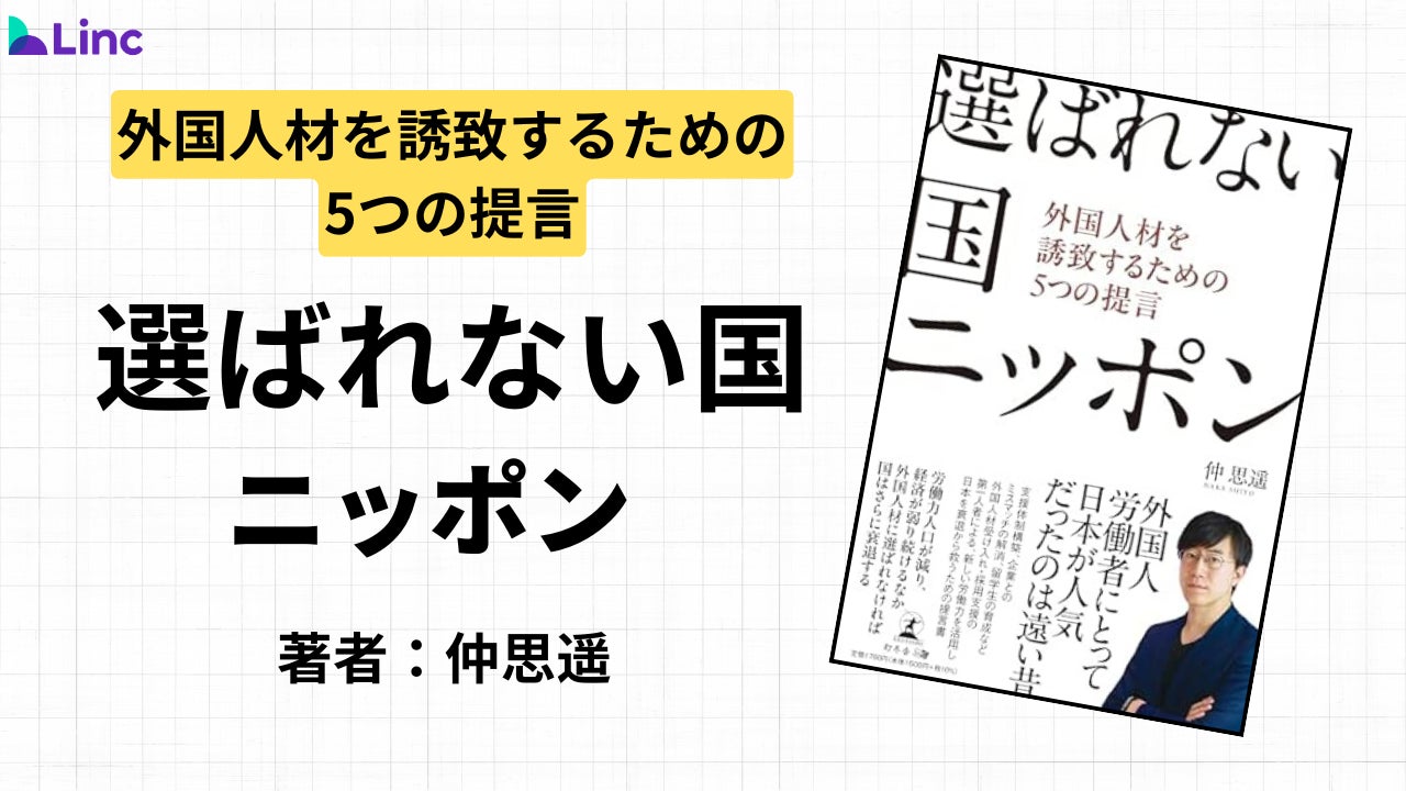 外国人材採用プラットフォーム「GlobalHub(グロハブ)」を運営する株式会社Linc(本社:東京都、代表取締役:仲 思遥)は、代表・仲 思遥の初著書『選ばれない国ニッポン ―外国人材を誘致するための5つの提言―』を、2026年3月2日(月)に幻冬舎より出版いたしました。