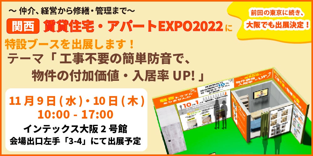 【簡単防音で物件の付加価値・入居率アップがテーマ】防音専門ピアリビングが、2022年11月9日〜10日に大阪の『賃貸住宅・アパートEXPOイベント』にて出展