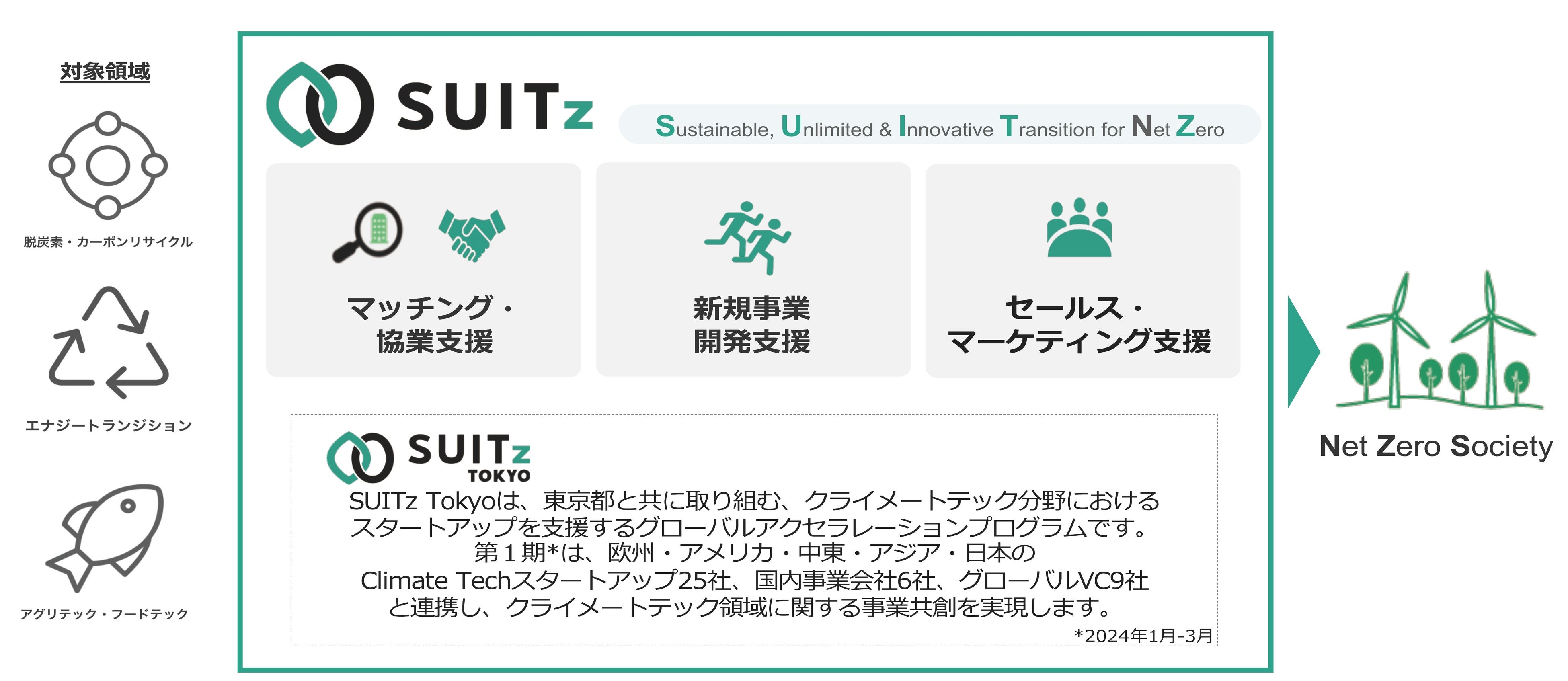 直近では、ネットゼロのための共創プラットフォーム「SUITz」の運営や、国内外のスタートアップの育成支援等行っています。