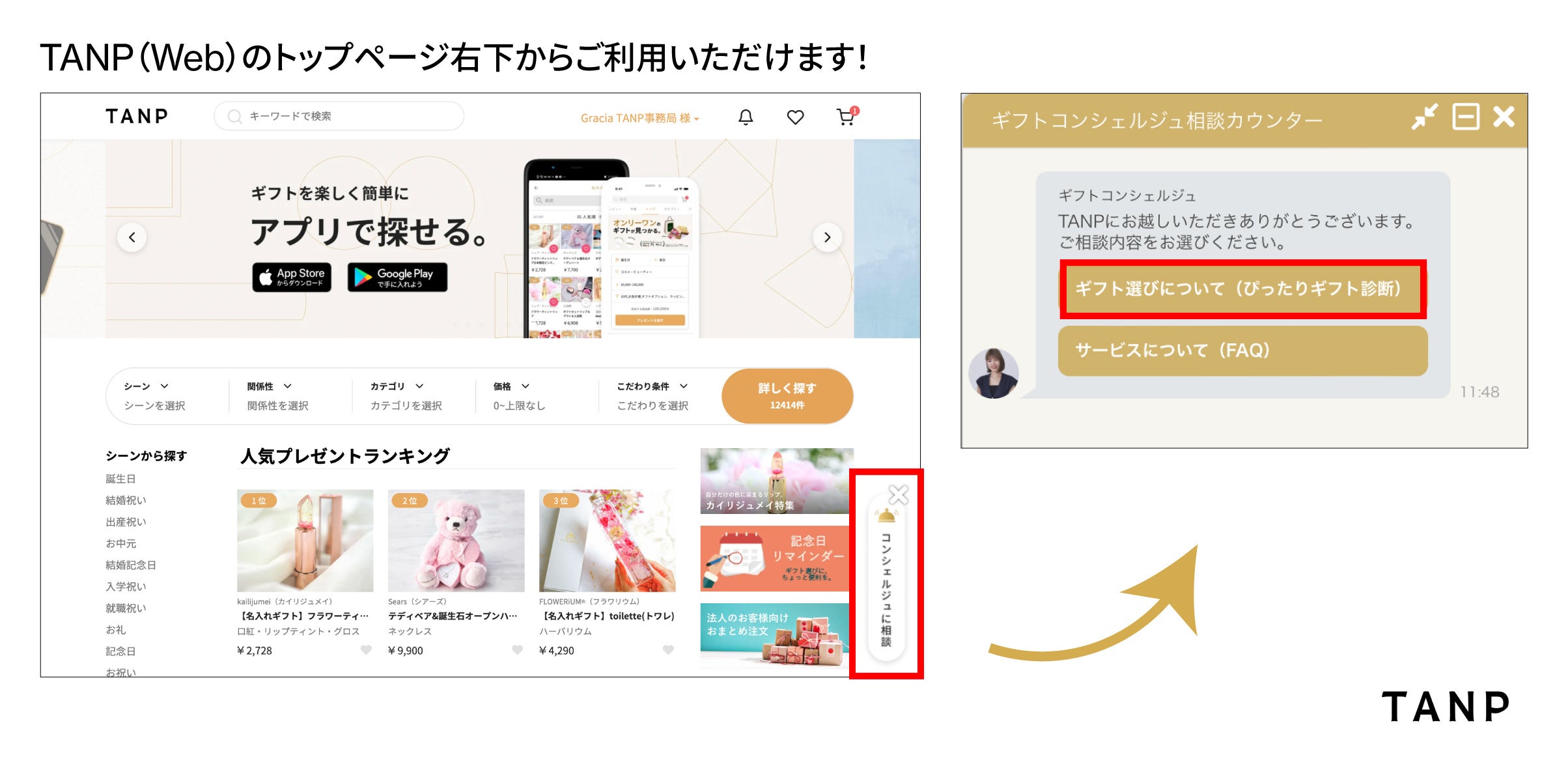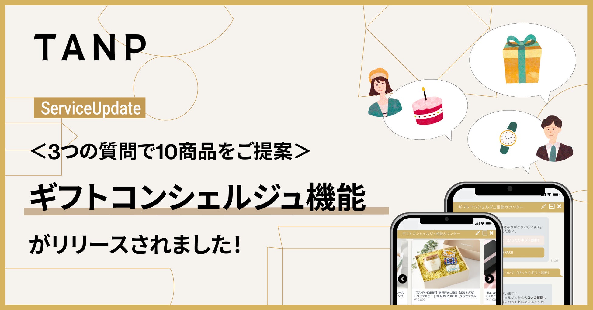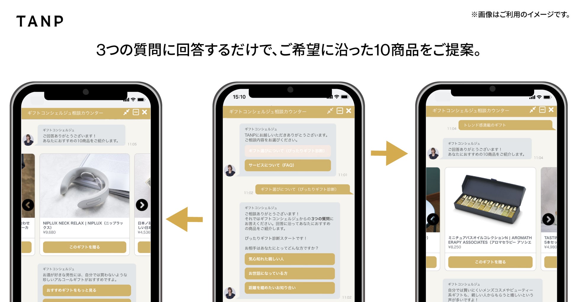 ギフトEC「TANP」、3つの質問で約15,000商品から「希望に沿った10商品と出会う」コンシェルジュ機能を公開