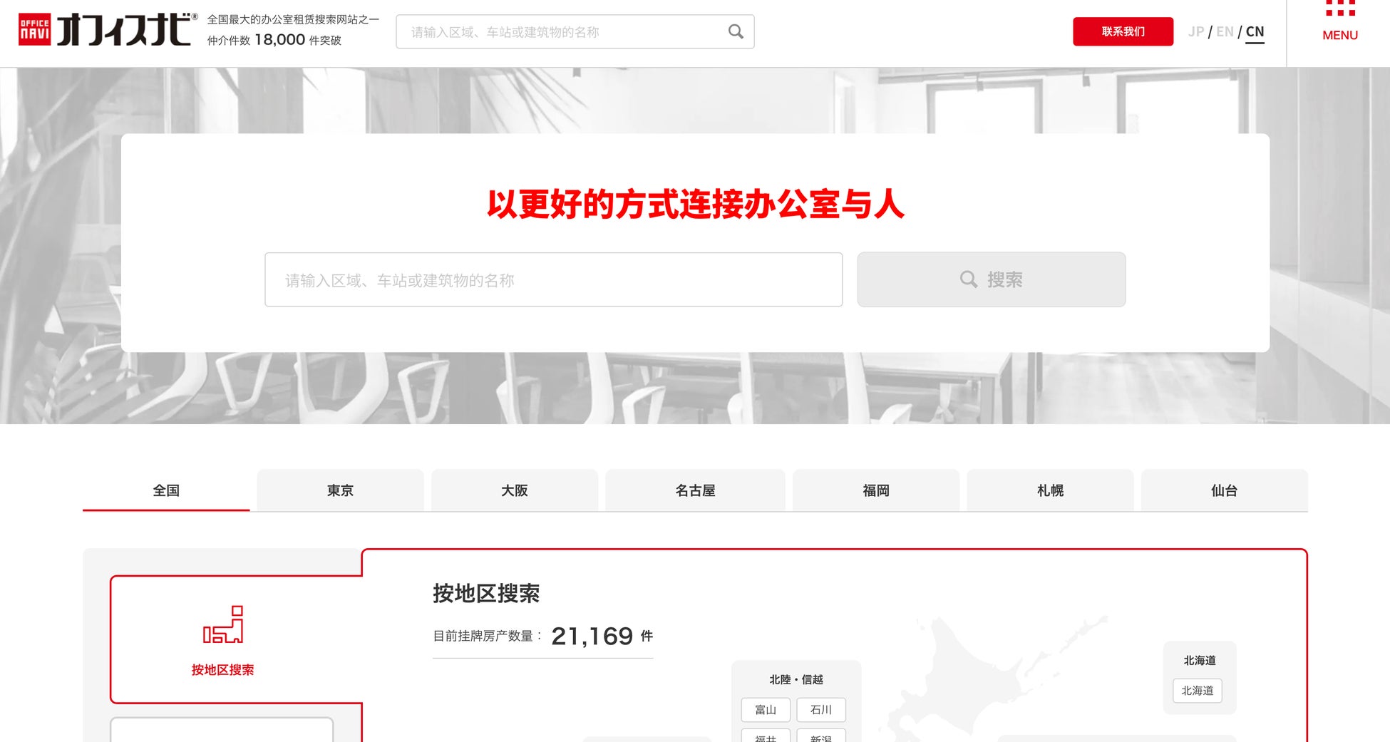 全国でオフィスコンサルティングを展開するオフィスナビ株式会社(東京本社:東京都港区赤坂2丁目2-12 NBF赤坂山王スクエア4階、代表取締役:金本修幸)は、2026年2月26日(木)より弊社が運営する賃貸オフィス検索サイト「オフィスナビ」の中国語版をリリースいたしました。