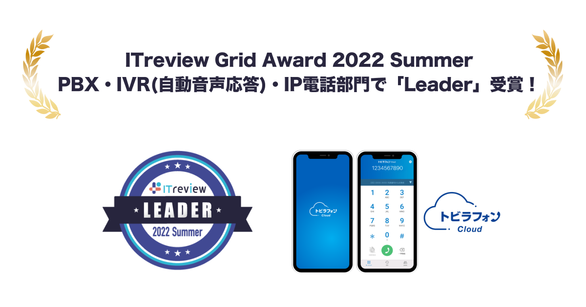 「トビラフォン Cloud」が、ITreview Grid Award 2022 Summerの PBX・IVR(自動音声応答)・IP電話の3部門で「Leader」を2期連続受賞