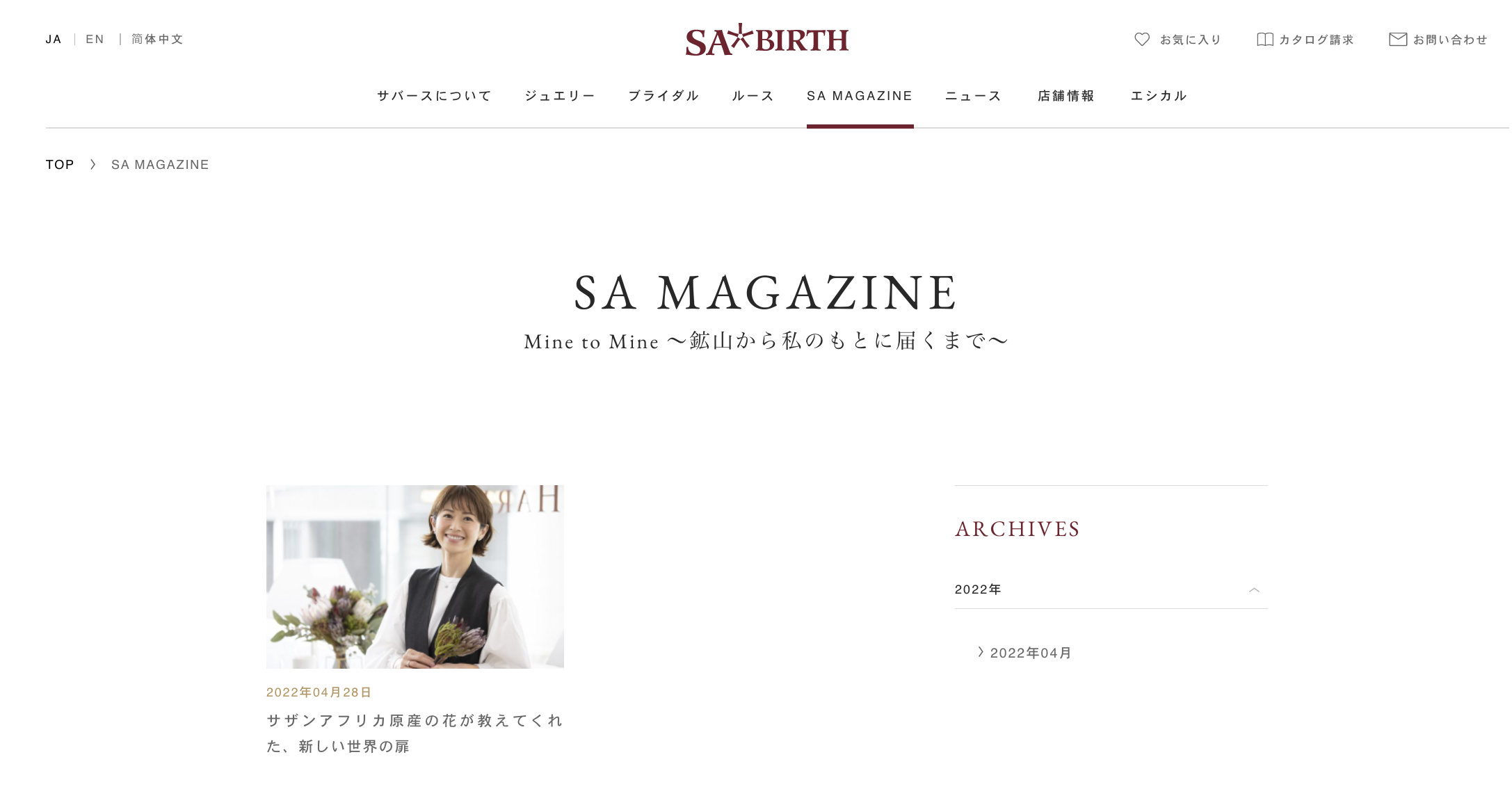 今回の新設ページ【SA MAGAZINE Mine to Mine〜鉱山からわたしのもとに届くまで〜】では、サバースの「 Mine to Mine」®の精神と同じく、あらゆる分野で活躍されている方々にフィーチャーします。こだわりを持って採用している特定産地の生産物やつながり、素材など、分野は違いますがサバースの中核を成す点との共通項を多角的に紹介するページです。