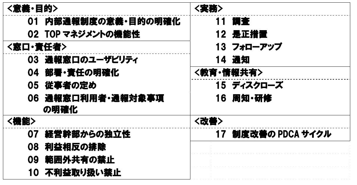 | <意義・目的> 01 内部通報制度の意義・目的の明確化 02 TOPマネジメントの機能性 |