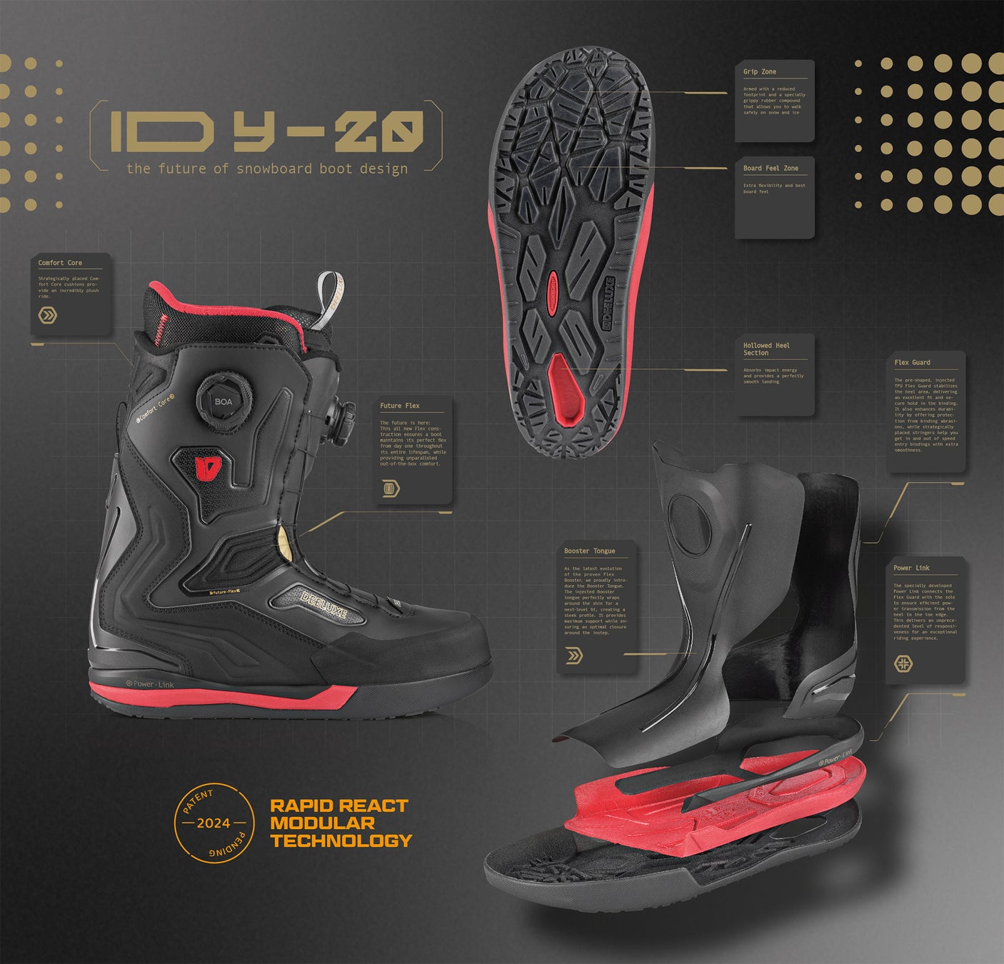 Rapid React Modular Technologyは、スノーボードブーツ全体の性能、特にレスポンス性機能に新たな時代を切り開きます。この技術は、ブーツの各パーツを完璧に調整し、ライダーのパフォーマンスを次のレベルへと引き上げるために設計されています。ID Y-20のすべてのコンポーネントは、相互に連携するように精密に調整されており、硬めのブーツに求められるパフォーマンスを発揮しつつ、DEELUXEならではの「箱から出してすぐ履ける」快適さと、比較的柔らかいフレックスを両立しています。DEELUXEのCEO兼創業者であるクラウス・ブランドステッター氏は、次のように述べています。「スノーボード業界とフットウェア業界で30年以上の経験を積んできた中で、数えきれないほどの技術が登場し、消え、そして時には再登場するのを見てきました。私たちにとって重要なのは、未来においても最先端であり続ける包括的なコンセプトを創り出すことです。今回開発した特許出願中のモジュラーシステムは非常に大きな可能性を秘めており、各コンポーネントが連携することで、単なるパーツの集合を超えた価値を生み出しています。」