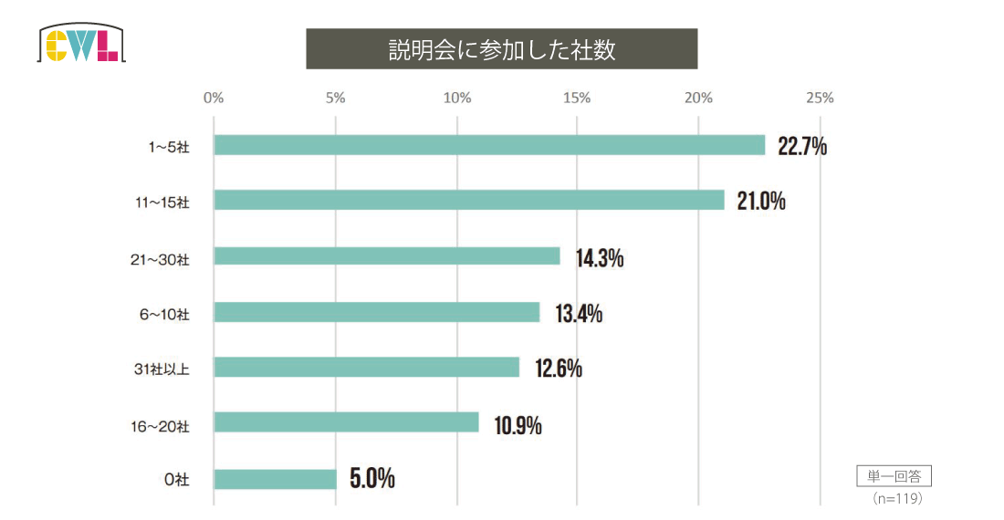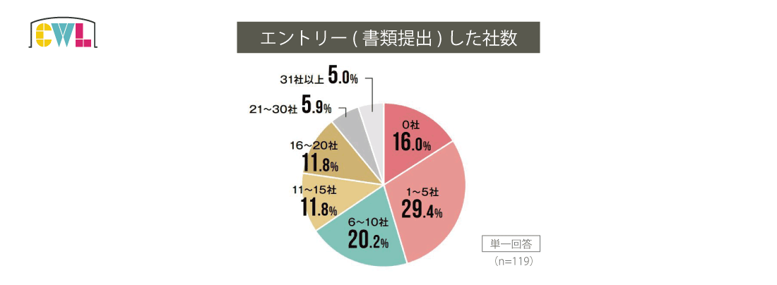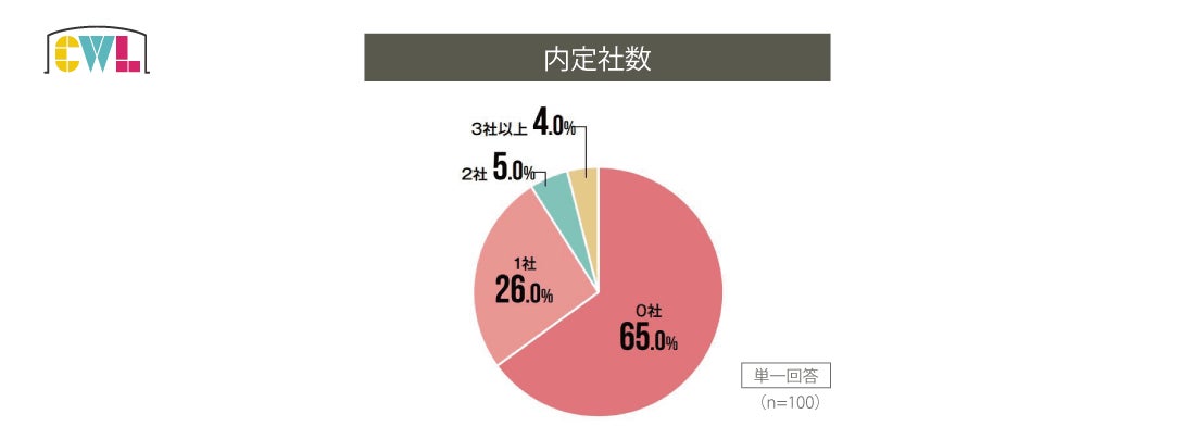 一般の内定率調査と比較すると約半分に留まりましたが、昨年6月に行った同様のアンケート(注2)と比較すると、+13.9ポイントUPしており、昨年より回復傾向が見られました。