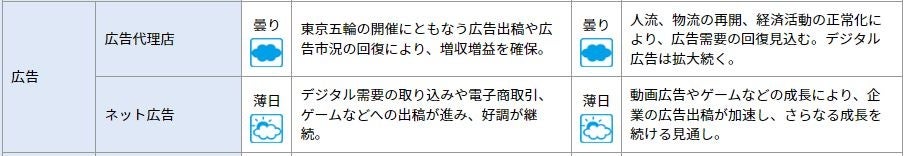 帝国データバンクが発表した業界天気図(注3)では、テレビ広告の需要減により広告代理店は曇り、出版・広告も雷雨の見立てとなっています。