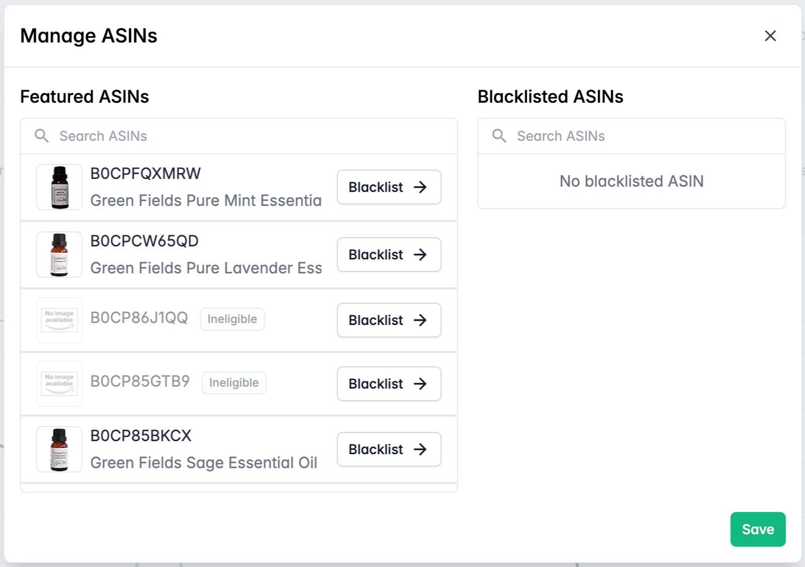 シンプルなダッシュボード設計により、広告の成否を判断するために必要な情報が簡潔に示され、アカウント全体およびASIN別の詳細なパフォーマンスを一目で確認できます。