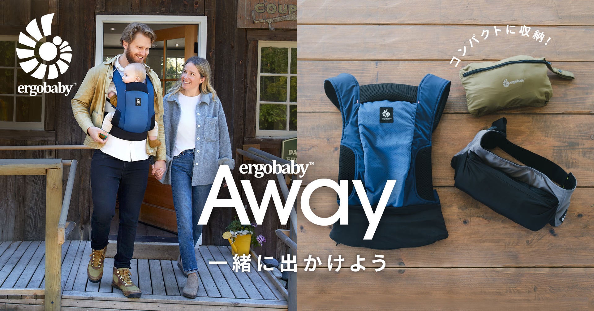 AWAYはこうした日本のパパママのニーズを受けて誕生しました。エルゴベビーが大切にするパパママと赤ちゃんのための「快適性」「動きやすさ」へのこだわりはそのままに、アクティブなお出かけに適した機能を詰め込んだ抱っこひもです。