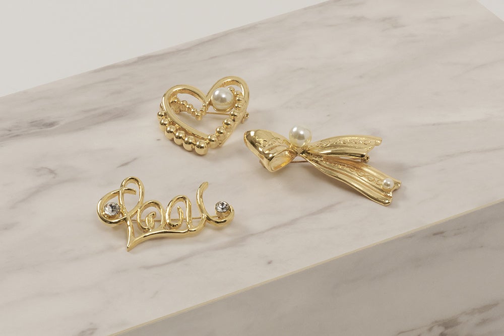 税込55,000円以上お買い上げのお客様にオリジナルブローチをプレゼント。3種類の中からお一つお選びいただけます。
