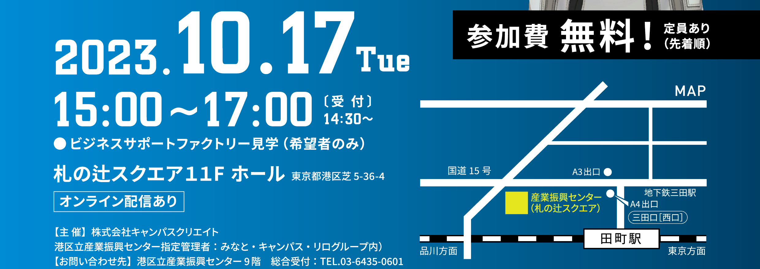 東京都港区芝5丁目36番4号 札ノ辻スクエア11F(港区立産業振興センター)