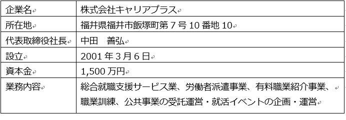 キャリアプラスは、福井県内を中心に総合的な人材支援サービスを展開しています。「ただ仕事が出来るだけ」のスタッフを紹介するのではなく、派遣先の社風に合ったより良い雰囲気を持つ人材を、永続的に提供できるよう教育関連にも力を入れています。2017年には福井県内唯一の法務省認可日本語専門学校を開校しています。また、優良派遣事業者および職業紹介優良事業者のダブル認定を受けています。