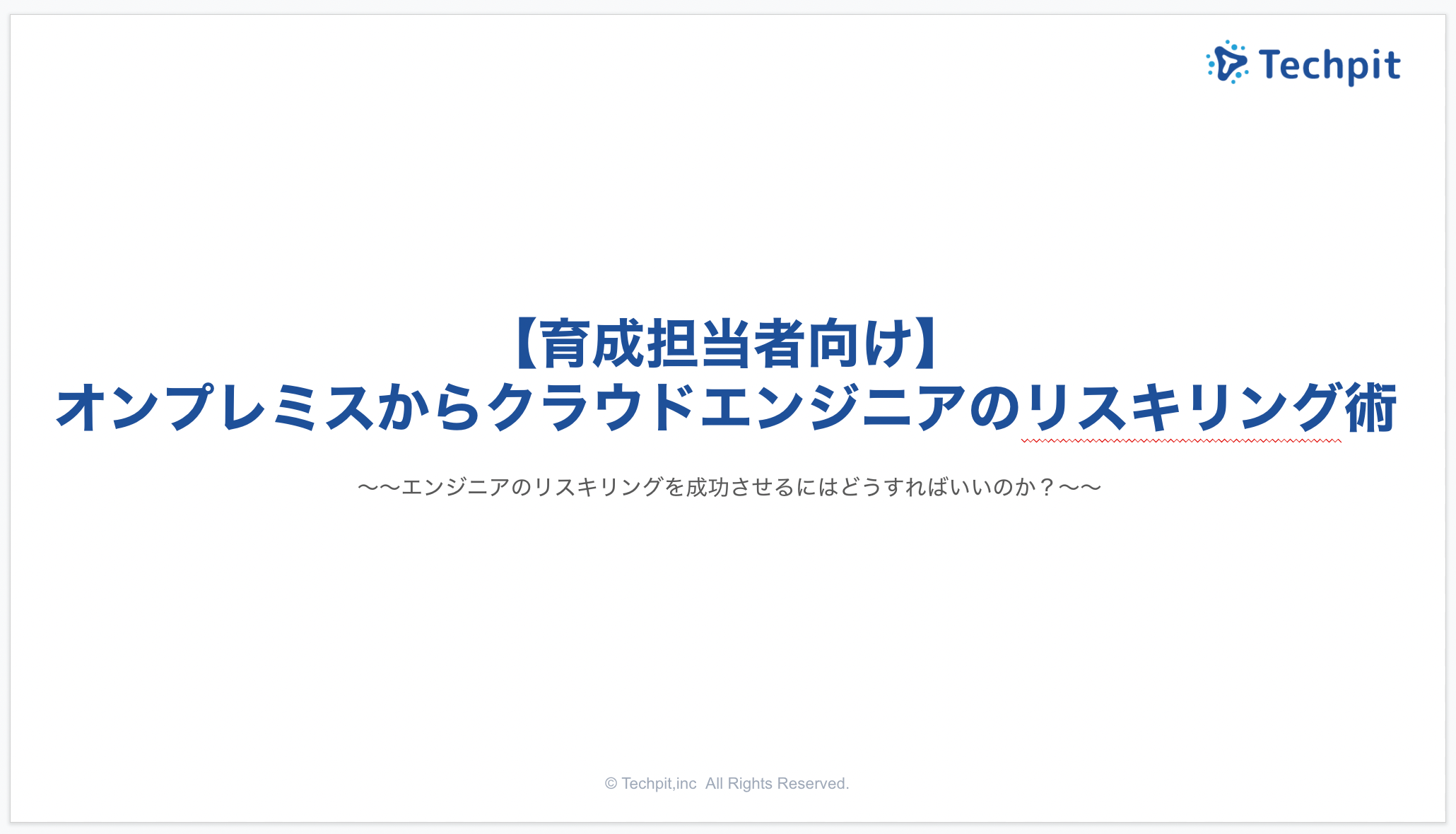 ・2022年11月17日に開催した「【育成担当者向け】オンプレミスからクラウドエンジニアのリスキリング術」のイベント内容と同様のホワイトペーパーになります。