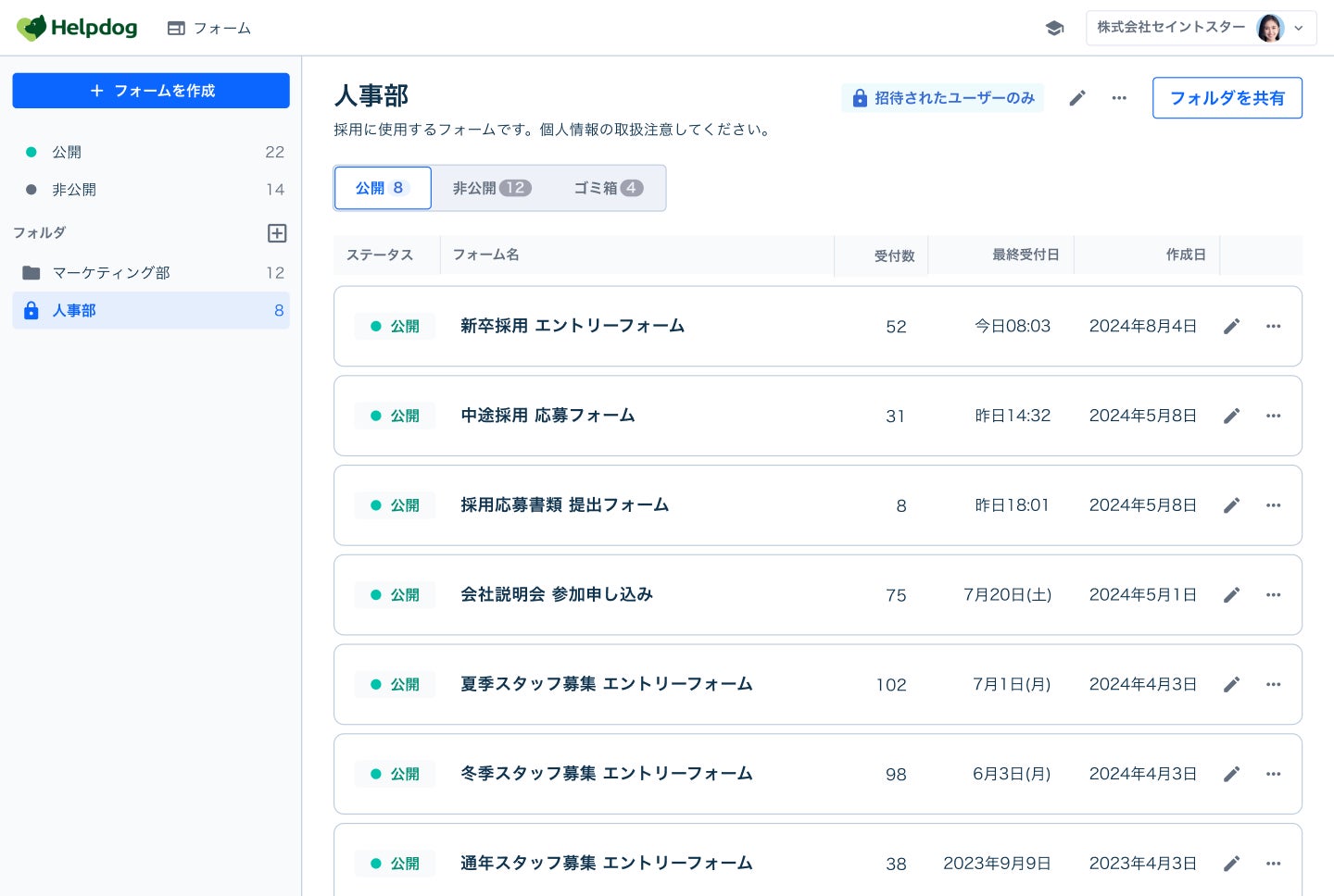 無料で使えるフォーム作成ツール「ヘルプドッグフォーム」、フォームへのアクセス制限やフォルダによるデータ管理機能の提供を開始