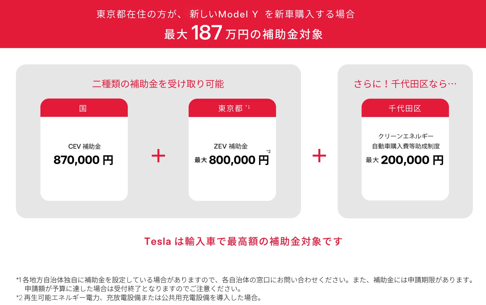 テスラは輸入車で最高額の補助金対象車両となりました。