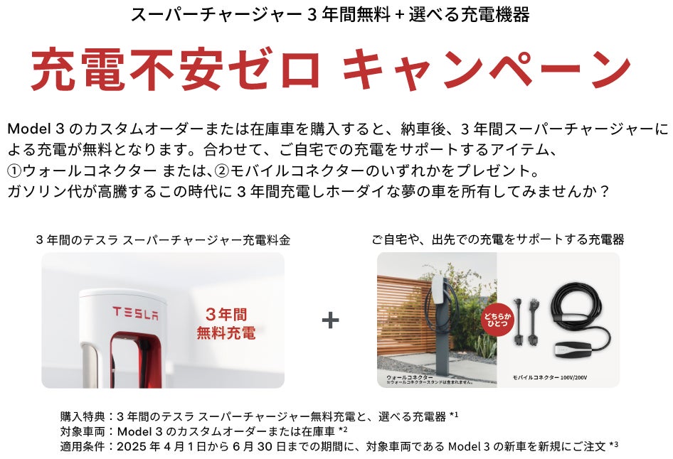さらに、テスラでは独自の充電ネットワーク「テスラ スーパーチャージャー」の無料利用特典など、電気自動車をはじめて所有される方でも安心してご購入いただけるキャンペーンを開催しています。補助金額が確定したこのタイミングはテスラを所有するチャンスです。