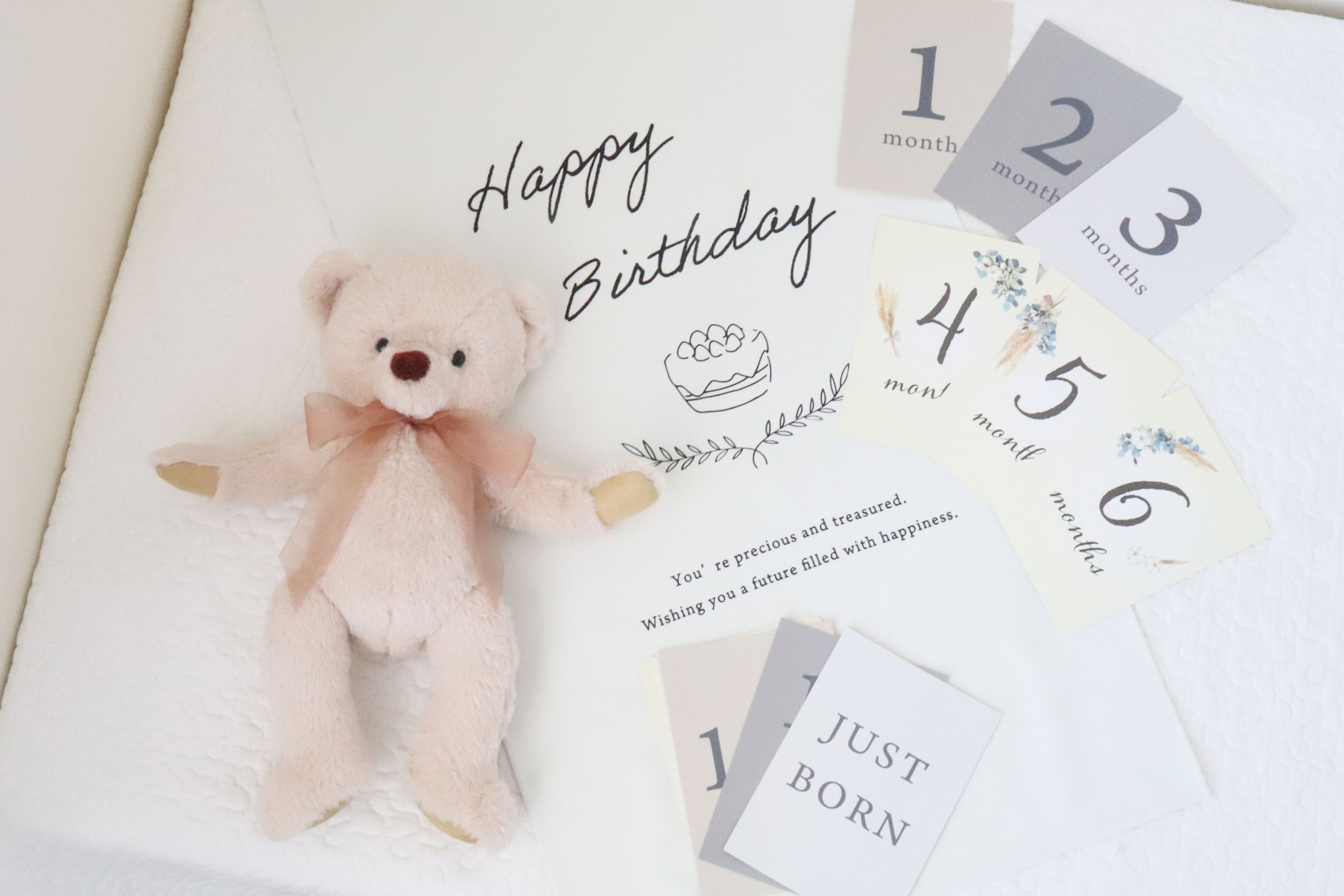 TeddyBearLifeJapan(海外販売):https://teddybearlife.jp/collections/all-products/products/baby-milestone-monthly-photo-teddy-bear-set