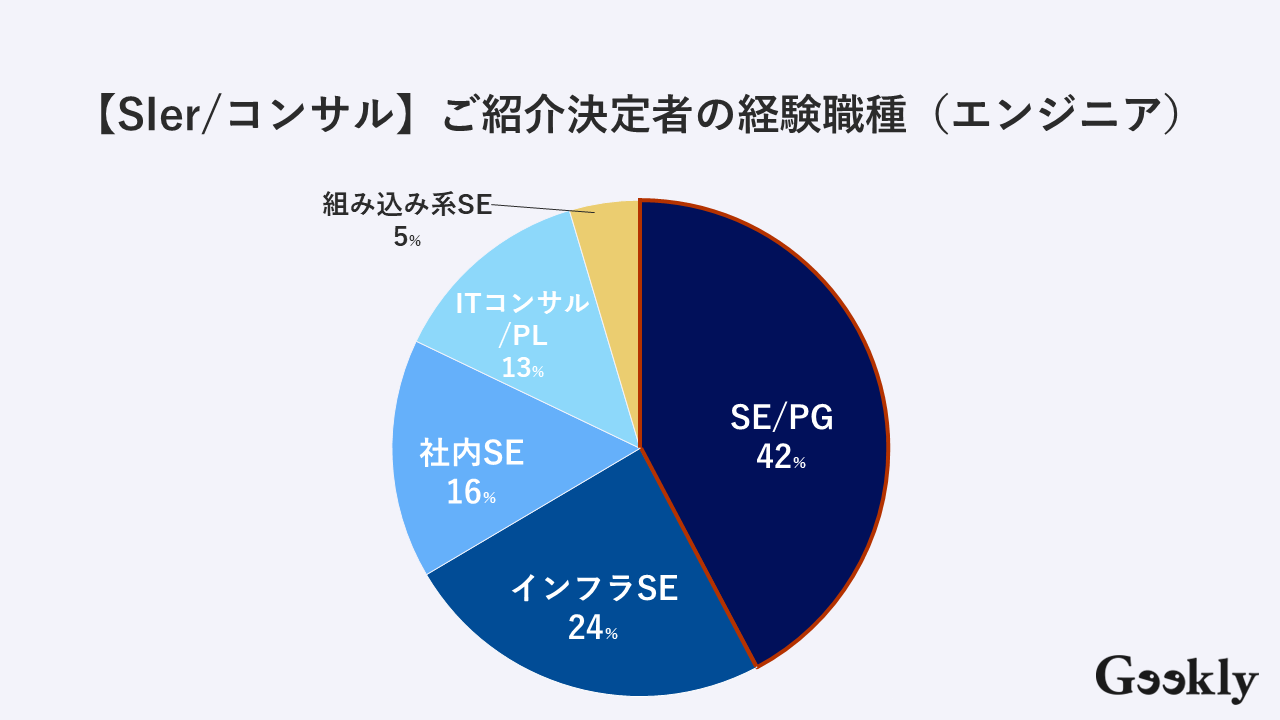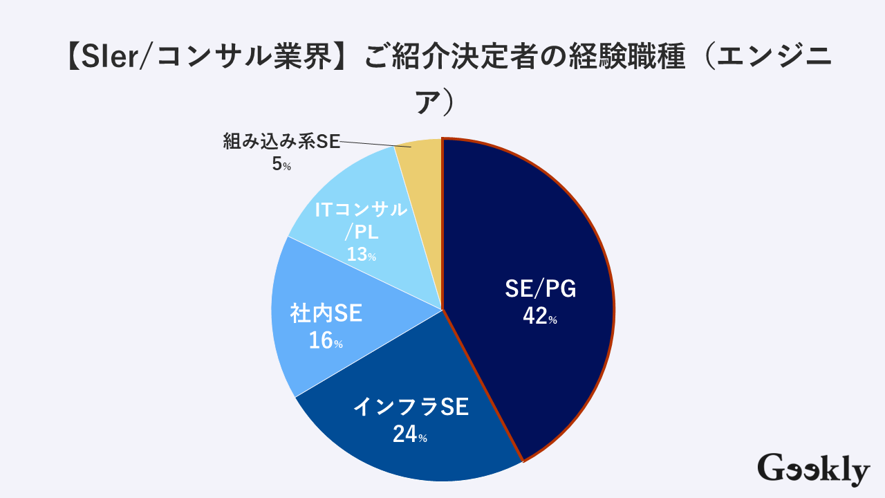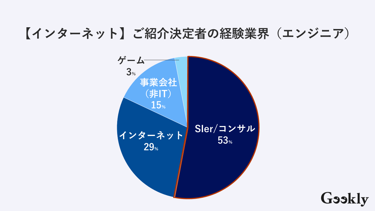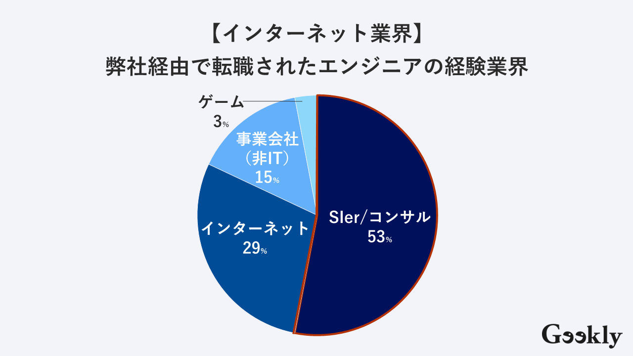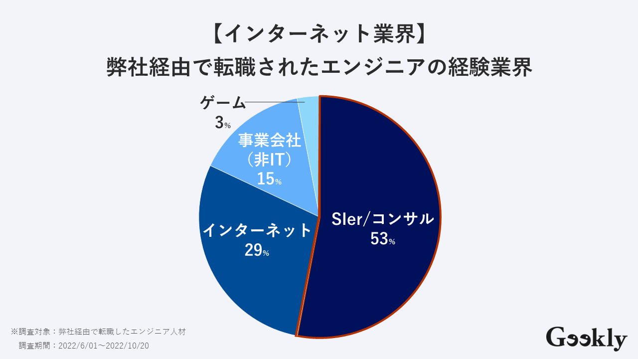 弊社経由でインターネット業界に転職されているエンジニアは、SIer出身者が53%を占めます。