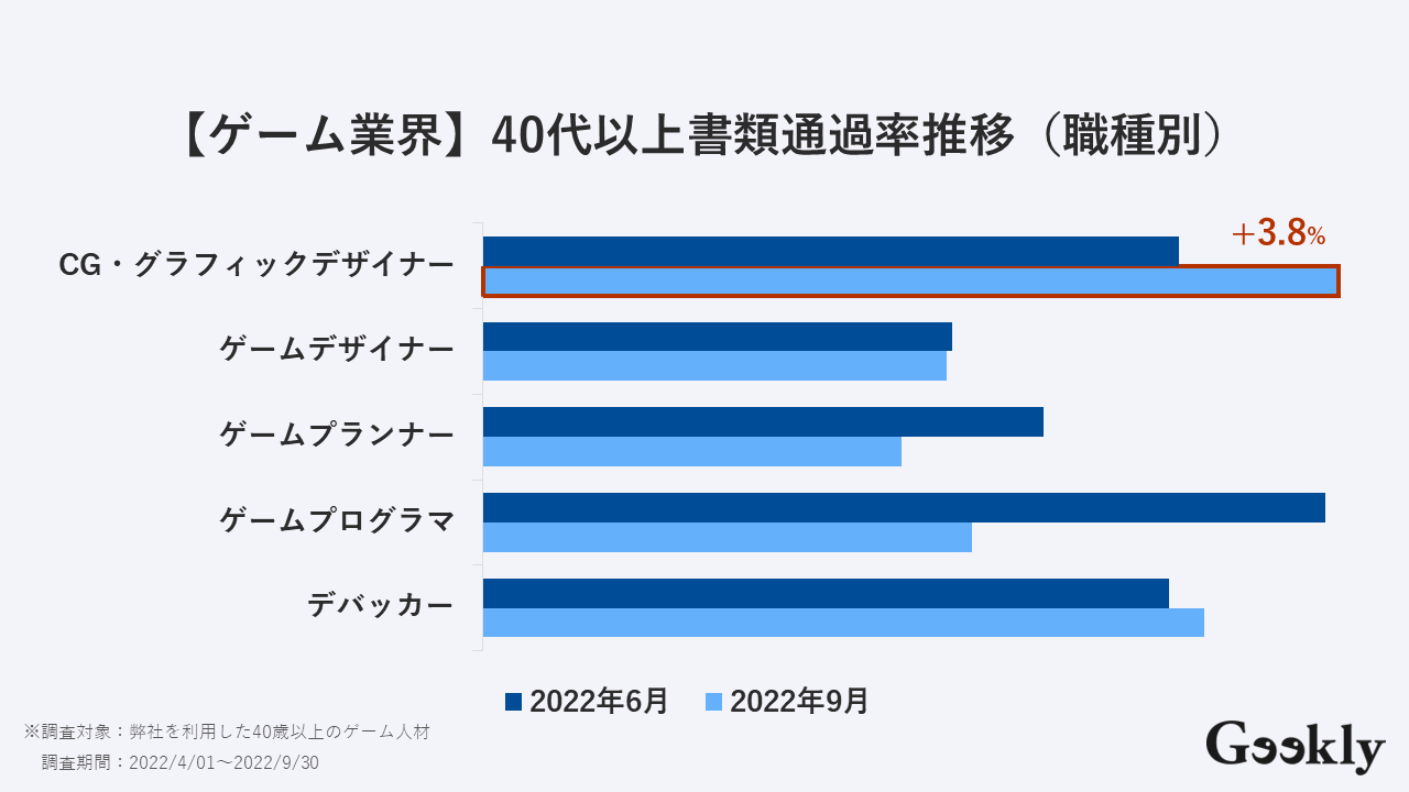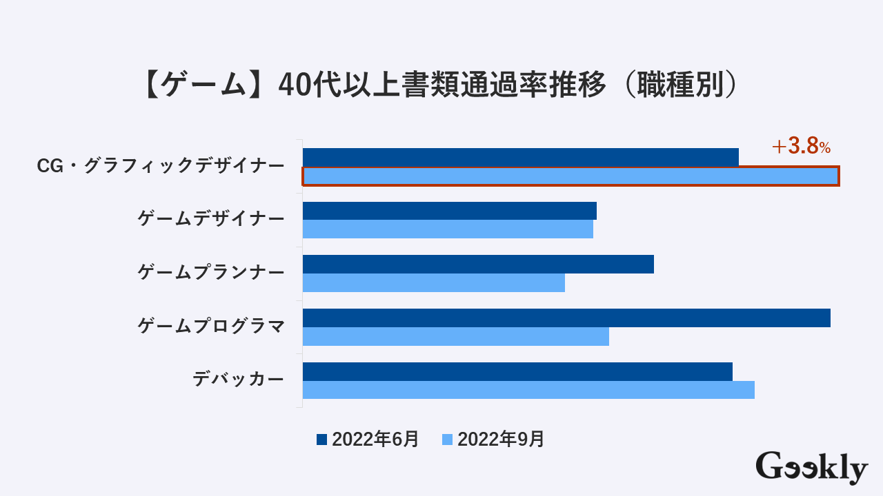 40代以上の中で職種別にみると、CG・グラフィックデザイナー職での書類通過率が伸びています。
