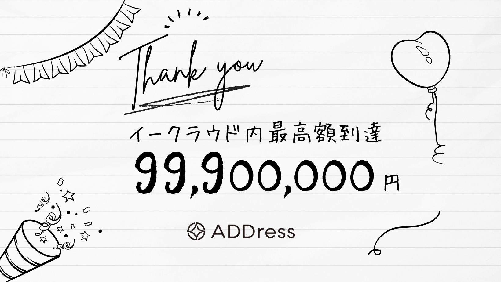 【ADDress】株式投資型クラウドファンディング「イークラウド」で国内最高額99,900,000円到達
