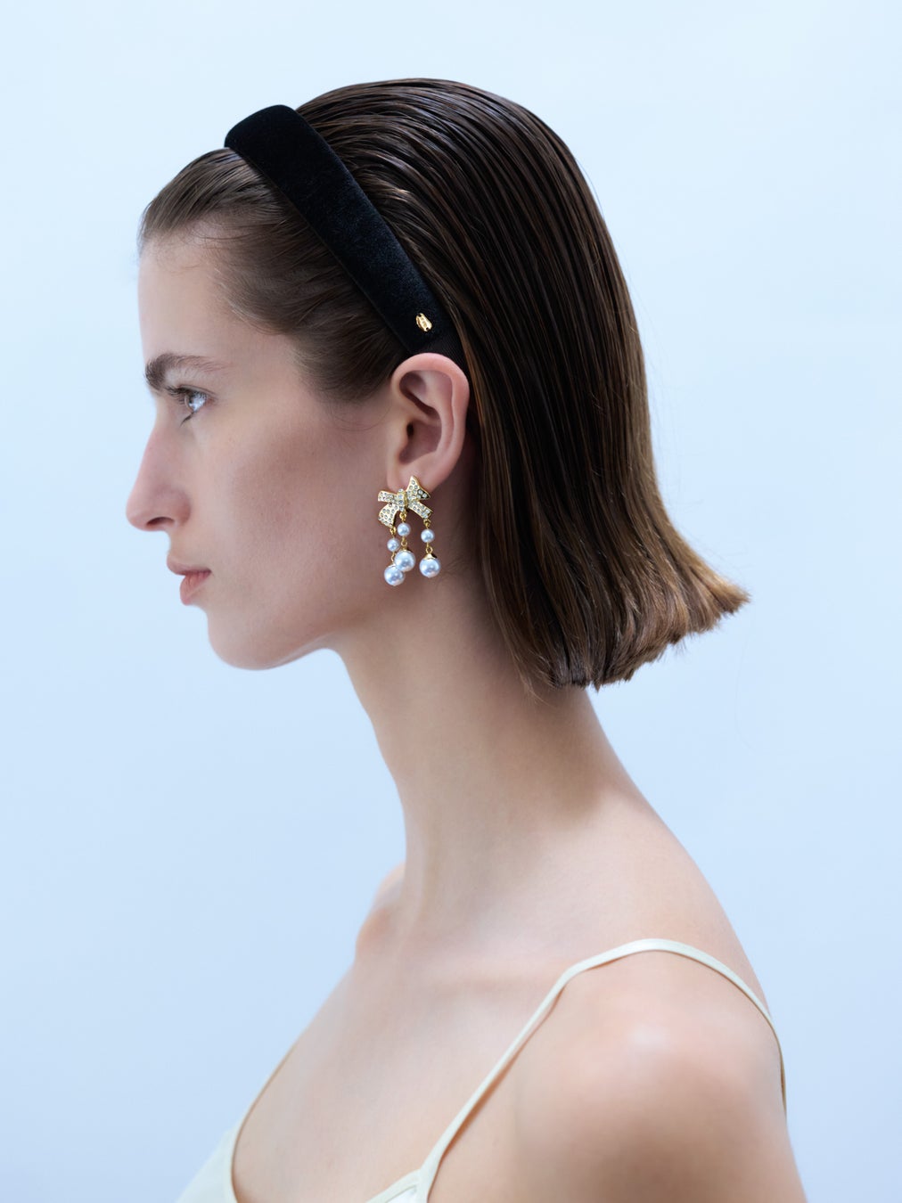 アシンメトリーに繋いだパールによって、モードな耳周りを実現したbow pearl earring。
