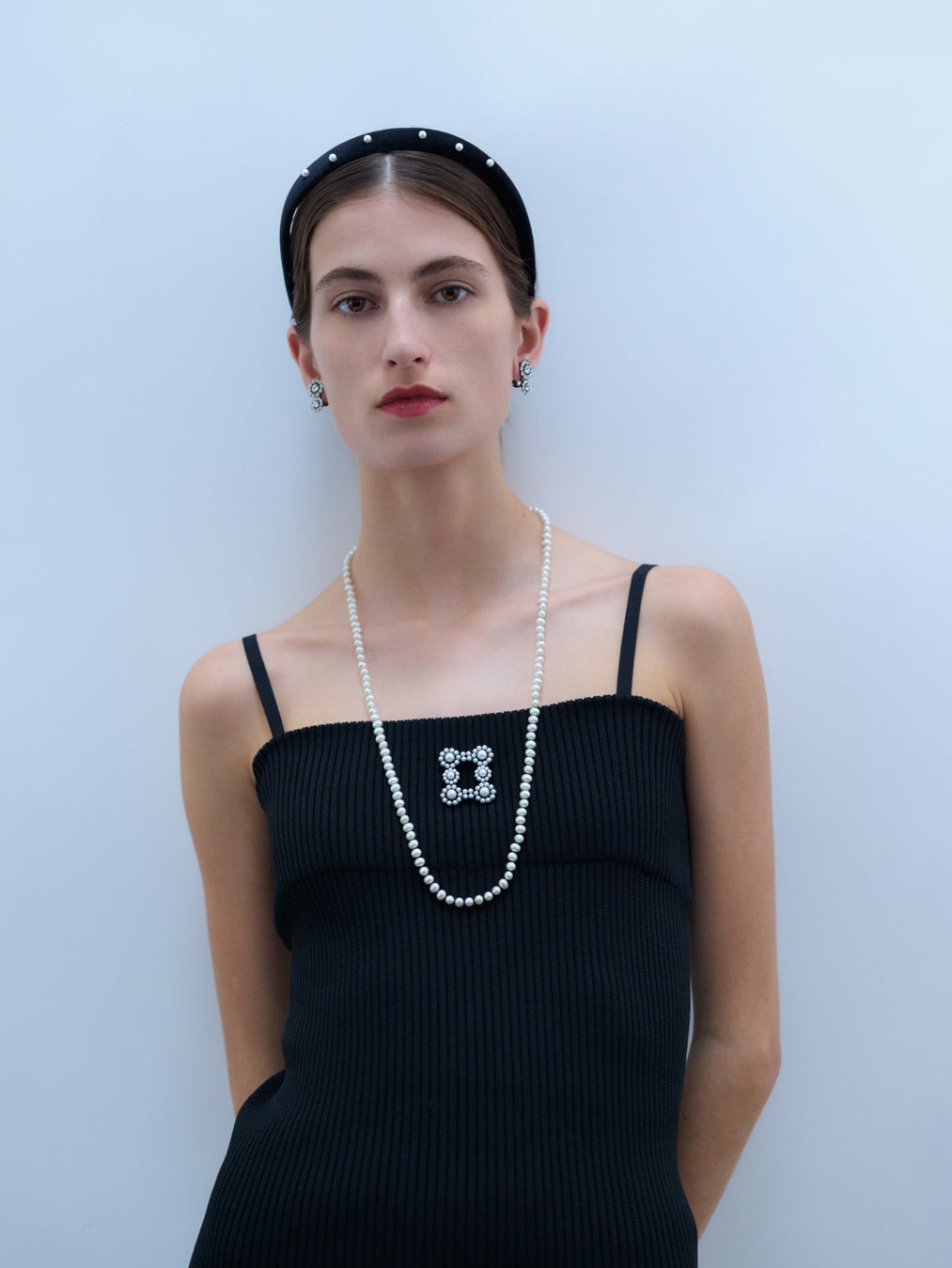 ランダムに配したパールがアクセントとなり、上品な中にチャーミングさを演出。