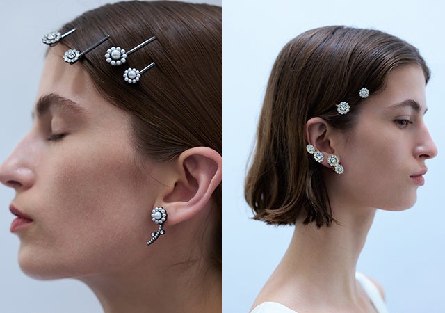 耳のラインをなぞるように着用すれば、ドレッシーでエッジの効いた横顔が叶います。